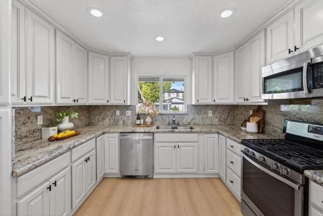 Step through a charming white picket fence into a welcoming home with a seamless, functional flow. A dedicated front yard sets the tone, while inside youll find brand-new light LVP flooring, a recently updated chefs kitchen, fresh interior and exterior paint, and updated hardware and lighting making this home truly move-in ready. Designed for both comfort and entertaining, the home offers two distinct living areas and a kitchen that opens to the dining space, creating an ideal setting for large gatherings. The well-sized bedrooms are thoughtfully positioned toward the rear of the home for added privacy, including a primary suite with a private sliding door that invites natural light and direct backyard access. The backyard is a true retreat, featuring a covered pergola, elegant stone paver patios with multiple seating areas, a spacious lawn, and dedicated garden beds for outdoor enjoyment. This residence beautifully blends classic charm with modern updates in one of the areas most established communities.