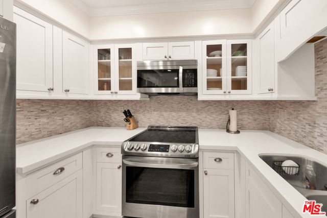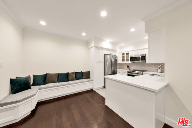 Discover this fully remodeled condo located in the heart of Sherman Oaks, in a coveted south-of-the-Boulevard location. This stylish residence showcases a thoughtfully designed interior, beginning with a brand-new kitchen featuring a matching LG stainless steel appliance suite, brand new dishwasher ,sleek soft-close cabinets, luxurious stone countertops, and a chic decorative backsplash.The space is further enhanced by a custom-built dining nook with tailored cushions and pillows, offering both charm and practicality. Additional highlights include central air conditioning, elegant engineered hardwood floors, detailed crown molding and baseboards, plantation shutters, and a new dual-paned sliding glass door for enhanced energy efficiency.The spa-inspired bathroom exudes sophistication with its stone countertop, wood-grain tile flooring, designer-tiled walls, and a brand-new tub and shower. Great open floor space .A Must See