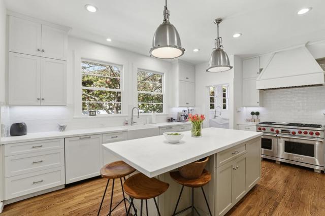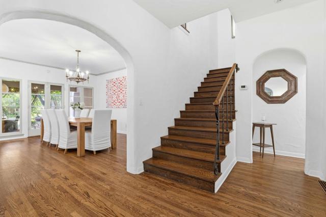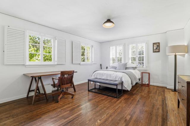 Beautifully maintained Spanish Colonial Revival on a private, tree-lined street in one of Palo Altos most desirable neighborhoods. Situated on an expansive 12,587 sq ft lot, this approx. 3,763 sq ft home offers 5 bedrooms and a detached studio ADU with kitchenette and full bath, ideal for guests, extended family, or office use. Features include hardwood floors, high ceilings, crown moldings, updated electrical, forced air heating with 2 zones, elevator access to main and upper levels, EV charging, AT&T Fiber, and an owned 24-panel solar system. Remodeled kitchen with Wolf range, Sub-Zero refrigerator, and Bosch dishwashers. Spacious backyard with mature landscaping, pool and spa with solar heating, covered patio, and multiple entertaining areas. 1 car garage plus ample driveway parking. Pet friendly and professionally managed. Close to downtown Palo Alto, Stanford, parks, and Highway 101. Top-rated schools include Duveneck Elementary, Greene Middle, and Palo Alto High (tenant to verify).