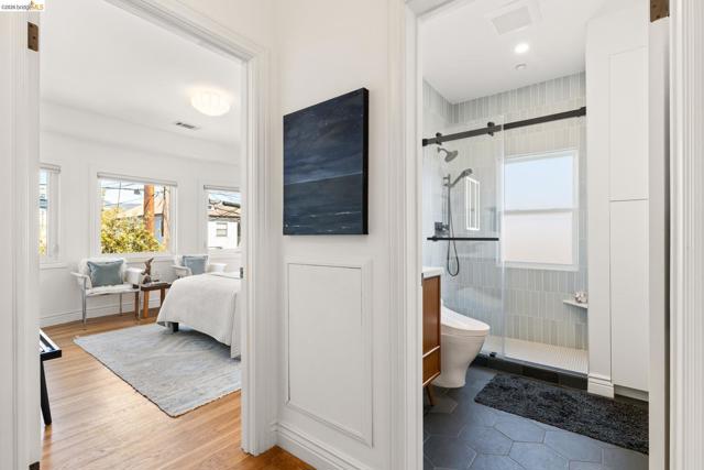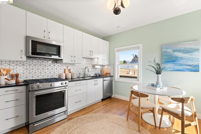 Sunny upper-level flat in a coveted Temescal location, thoughtfully updated with stylish design and quality craftsmanship with park-like yard! This inviting home features two spacious bedrooms, a generous living room, and a beautifully remodeled eat-in kitchen with quartz countertops, tile backsplash, upgraded appliances, stylish lighting, and ample storage. The updated bathroom offers a frameless glass walk-in shower with modern tile and fixtures, plus a flexible nook ideal for a home office. Hardwood floors, spacious closets, upgraded lighting, and a cheerful palette complete the interior. The back deck leads to landscaped yarc with lounge areas and an abundant urban oasis featuring plum, fig, lemon, apricot, pear, and quince trees, along with blackberry vines, roses, jasmine, and veggie and herb beds. Shared storage for bikes and more. Located across from Temescal Alley and moments from neighborhood favorites like Pizzaiolo, Cholita Linda, Bakesale Betty, Burma Superstar, Snail Bar, and Marufuku Ramen. Near Peet’s, Forma Bakery, Poppy Bagels, Whole Foods, Sunday farmers’ market, Rockridge and MacArthur BART, AC Transit, tech shuttles, and Highways 13, 24, and 580. 98 WalkScore® and 92 BikeScore™!