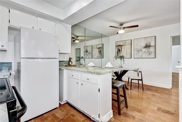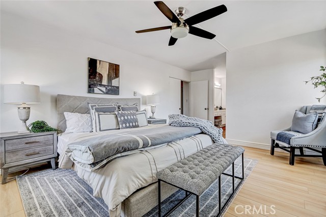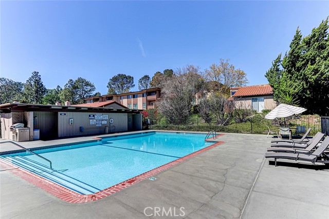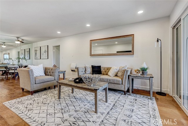 Welcome to this beautifully updated and light-filled 2-bedroom, 1¾-bath residence in the highly desirable Armaga Springs community of Rancho Palos Verdes. Ideally situated in an interior location, this home offers a peaceful setting just moments from the community pool—close enough to enjoy, yet perfectly positioned for privacy and quiet. This inviting second-level unit features a bright and spacious living room enhanced by newly added recessed lighting, creating a warm and modern ambiance. Sliding glass doors open to a private balcony, perfect for relaxing or enjoying serene views of the surrounding greenery. The thoughtfully designed floor plan flows seamlessly from the living area into the dining space and kitchen, which is appointed with stone countertops, white cabinetry, and abundant natural light. Both bedrooms are generously sized and filled with light, including a comfortable primary suite with a walk-in closet and an ensuite bath featuring a separate vanity area. Additional highlights include double-pane vinyl windows and a slider, engineered wood flooring, in-unit laundry, and ample storage. The home also includes two side-by-side assigned parking spaces. Residents of Armaga Springs enjoy resort-style amenities including a pool, BBQ area, and beautifully landscaped grounds. Located within the award-winning Palos Verdes Peninsula Unified School District and just minutes from shopping, dining, parks, and scenic coastal trails, this home offers the perfect blend of comfort, convenience, and lifestyle.