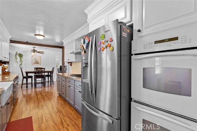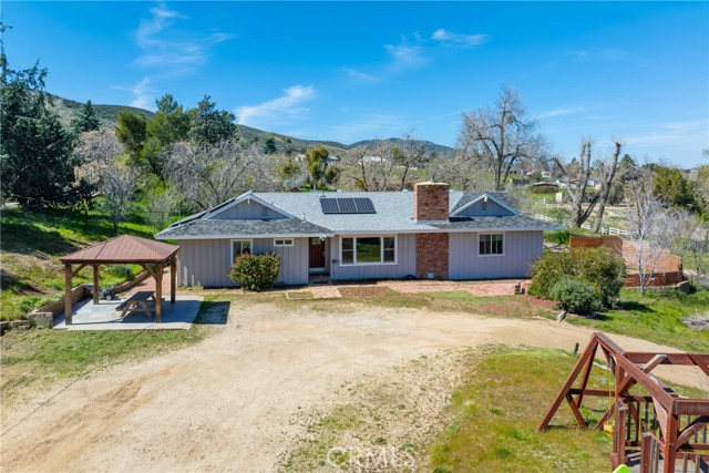 Welcome to your private ranch retreat in the heart of Leona Valley where wide open spaces, peaceful surroundings, and endless possibilities await. Situated on nearly 3 acres across two parcels, this exceptional property is ideal for those seeking a more independent lifestyle whether you're an equestrian enthusiast, hobby farmer, animal lover, or simply craving space and privacy. Beyond the gated entry, a long circular driveway sets the tone for this secluded and well-maintained residence. Offering approximately 1,900 square feet of living space, the home features a warm, inviting interior with laminate wood flooring, neutral paint selections, custom wainscoting and decorative trims and an abundance of windows that frame the natural landscape and scenic views. The thoughtfully designed floor plan includes a spacious formal living room with a charming brick fireplace and pellet stove, a dedicated dining area, and an expansive family room, perfect for entertaining and hosting large gatherings. The updated kitchen is both functional and stylish, showcasing granite countertops, updated cabinetry, a farmhouse sink, double oven, and stainless appliances. The primary suite is generously sized and offers a beautifully upgraded ensuite bath with an oversized shower and custom tile work. Secondary bedrooms are equally spacious with ample storage, and the hall bath has been tastefully updated with a newer vanity, granite counters, and subway tile finishes. Step outside and experience the true value of this property, designed for those who appreciate land, freedom, and versatility. The grounds include a 7-stall barn with overhead storage, a separate hay barn, chicken coop, and a workshop, providing the perfect setup for horses, livestock, or agricultural pursuits. Multiple patios create ideal spaces for outdoor dining, entertaining, or simply taking in the quiet beauty of your surroundings. Additional highlights include owned solar, a newer roof, indoor laundry, and plenty of room to expand. Enjoy the best of both worlds, peaceful rural living with convenient access to nearby schools, shopping, dining, and main roadways.