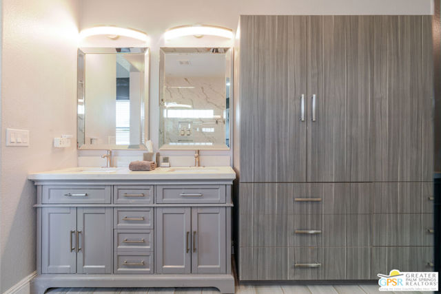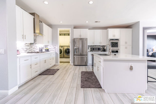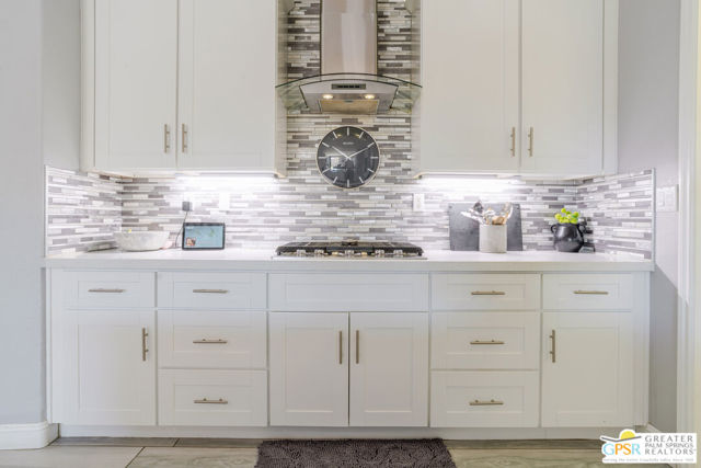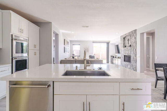 Desert living done right. This extensively renovated 4-bedroom, 2-bath Indio home checks every box: RV parking, room for a pool, custom built-ins throughout, and a level of finish that's rarely seen. Offering 2,080 sq ft of beautifully appointed living space on a 9,148 sq ft lot, every detail of this home has been thoughtfully upgraded and it shows. Soaring 9-foot ceilings and 8-foot doors and plank tile flooring set the tone throughout. The gas fireplace with stone surround and custom built-in cabinetry anchors the main living area, while the Chef's kitchen will delight any entertainer. A flexible 4th bedroom serves beautifully as a private office or guest room, and a formal dining room with glass shelves and French doors offers even greater versatility as an optional swing room. The split floor plan primary suite features built-in cabinetry, a walk-in shower, private water closet, and a walk-in closet outfitted with built-in cabinets and shoe racks. Custom built-in nightstands add a finishing touch to the primary bedroom experience. The second bath offers a shower/tub combo with a linen closet. Out back, a gorgeously landscaped yard with footings for a future covered patio and ample room to add a pool. Full laundry and an attached 2-car garage. RV-friendly zoning in a Desert Sands Unified neighborhood. Homes finished to this level don't come along very often, don't miss this opportunity to own something truly special.
