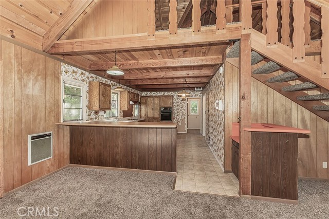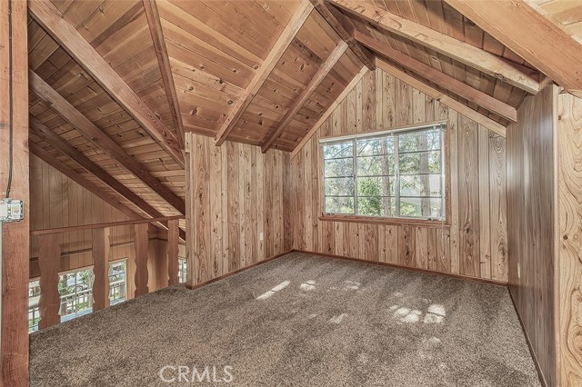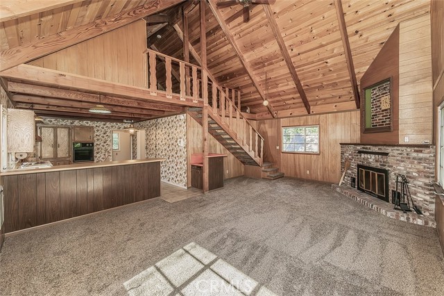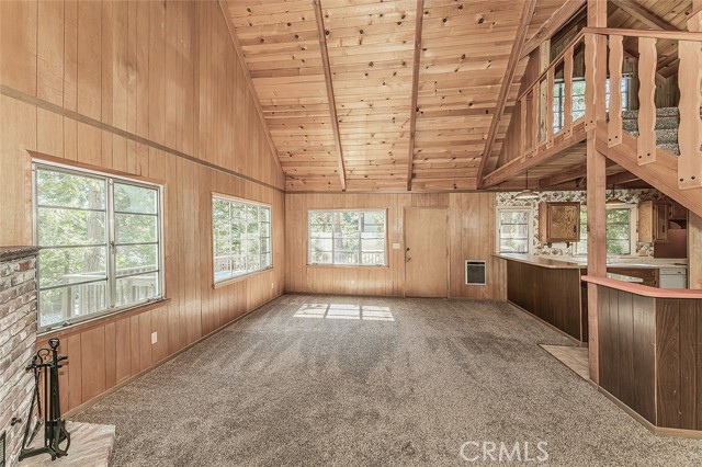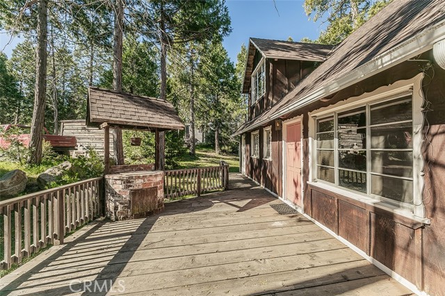 Perched above the lane for added privacy, this inviting mountain cabin offers the perfect blend of rustic charm, comfort, and unforgettable and relaxing views. Situated in Meadow Lakes with several private lakes and minutes from water skiing in the summer, snow skiing in the winter, or relaxing all year round. Step inside to a warm and welcoming living room anchored by a striking brick fireplace with a wood insert that efficiently heats the entire cabin. The open loft design allows cozy warmth to naturally rise upstairs, creating the perfect mountain retreat-atmosphere on chilly evenings. The vaulted tongue-and-groove wood ceilings are beautiful and in excellent condition to add dramatic height and authentic cabin character throughout the home. The soaring ceilings and open layout create a surprisingly spacious feel.The main level also features a convenient laundry room, bedroom, full bathroom with a tub/shower combination ideal for guests or easy single-level living. Upstairs, the generously sized open loft offers incredible flexibility. Keep it as a fun bunk-style sleeping area that can comfortably accommodate six or more guests, or transform it into a relaxing lounge, game area, or additional sleeping quarters. The loft also includes a second bathroom with a shower. The kitchen is both functional and charmingly retro, featuring a breakfast bar for casual meals, space for a dining table, plenty of kitchen cabinet storage, and both a microwave and trash compactor. Enjoy the spacious front deck perfect for morning coffee, evening relaxation, or simply soaking in the fresh pine-scented mountain air while taking in the views. A unique, covered round brick BBQ, in the shape of an old-fashioned well, with a bucket on a rope above the grill that includes as a built-in light for convenient evening grilling. Lovingly built and meticulously cared for by the same family throughout its lifetime, this special cabin now shines with beautiful new flooring. The county takes care of snow removal by plowing the road in front, making year-round access simple and stress-free. Whether you're looking for a peaceful mountain getaway, a cozy family retreat, or a place to gather with friends to make lasting memories, this charming cabin delivers the mountain lifestyle buyers dream about. Under the house, you'll enjoy some stand-up crawlspace available for a small shop or storage of summer/winter toys.