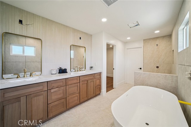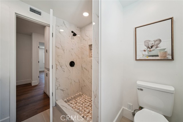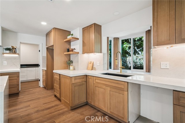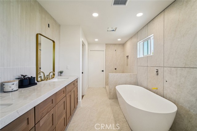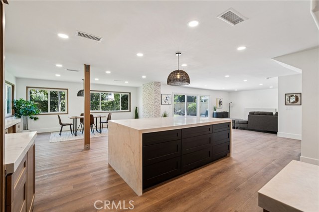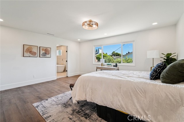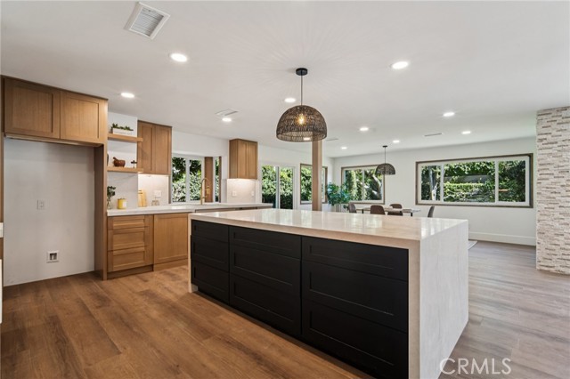 Absolutely stunning home in the prestigious neighborhood of El Dorado Park Estates in Long Beach, CA! This is a one-of-a-kind property, perfectly geographically positioned, right on the border of Orange County. This home must be experienced to be fully appreciated - every part of this home was renovated to absolute perfection! The curb appeal radiates the American Dream, with beautiful stackstone complimenting the exterior custom paint & trim creating instant joy upon arrival. Before stepping in through the custom White Oak front door, custom wood work and be seen encasing the double-pane vinyl windows throughout - creating the ideal setting for indoor/outdoor living in a wonderful and safe neighborhood to live and enjoy family. Once opening the front door, the height of the ceiling is immediately noticed as heightened to 8 feet, complete with interior walls fitted with 8-inch baseboards. The flooring is absolutely gorgeous and look flawless - brand new luxury vinyl tile installed throughout, both beautiful & practical for daily living in a beach city. The kitchen has been completely reimagined and opened up, with high-end custom white oak cabinets, new hardware, new lighting fixtures, custom accent lighting, Solitaj Q Quartz 2 1/4 inch bull-nose countertops, and complete with a custom built waterfall kitchen island with 55" x 101" dimensions. The kitchen provides a walk-in chef's pantry - a rare find for the area! The Living Room fireplace is fitted with beautiful Marvel Italian Tile, and the window interiors are fitted with custom oak casings. The full bath on the first level is remodeled to the highest standards - complete with a stunning urban slat wall. The two car garage enters into the separated laundry room - perfect for pragmatic use & the sound quality of the home. The stairway to the 2nd level has been rebuilt with custom materials & modern railing. The Primary Bedroom upstairs is an enlarged bedroom, complete with an ensuite Primary Bath - situated with the highest quality materials, a free-standing tub, double vanity, enormous walk in closet, and separate shower. The 5th Bedroom bonus room is as gorgeous as it is rare, designed with vaulted ceilings and beams. Other upgrades include: all new PEX Plumbing throughout, all new duct work installed, brand new HVAC system, new sewer line out to the street. This home will not last long!