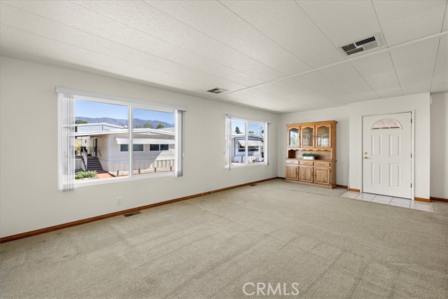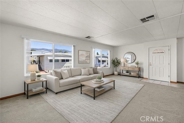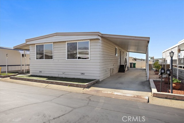 Move-in ready 3-bedroom, 2-bath manufactured home offering 1,440 sq ft of comfortable living space in the desirable 55+ community with LOW SPACE RENT. Originally built in 1970, the home was later remodeled with dual-pane windows, drywall, and added insulation for improved comfort and efficiency. The kitchen features tile flooring, granite countertops, maple cabinetry, and a newer LG refrigerator. A large, front-loading LG washer and dryer set is also included. The home offers clean carpet flooring throughout, along with vertical blinds on all windows. The spacious living room is filled with natural light from two large windows, showcasing beautiful mountain views. The bedrooms include generous closets with mirrored sliding doors. Both bathrooms are updated with tile flooring, granite countertops, and walk-in showers. Additional recent upgrades include a brand-new A/C condenser, all new PEX plumbing, and a brand-new water heater. Outside, enjoy a large, covered porch with an aluminum awning and low-maintenance artificial turf landscaping. Also included is a good-sized shed for storage. Located in a quiet, well-maintained community with extremely LOW SPACE RENT, this home offers great value and easy living. Act quickly!