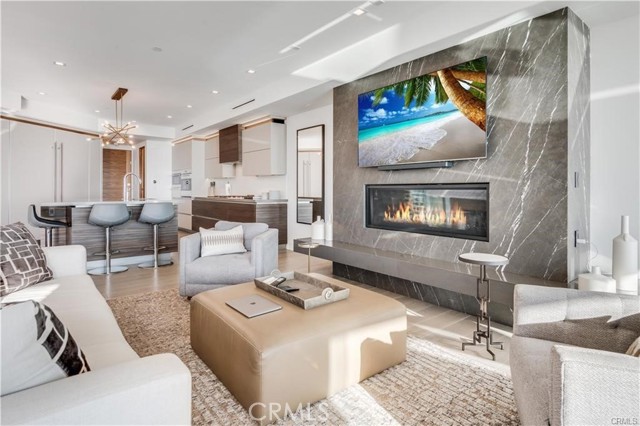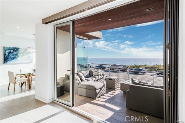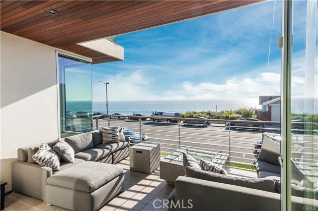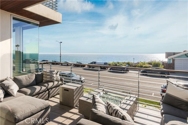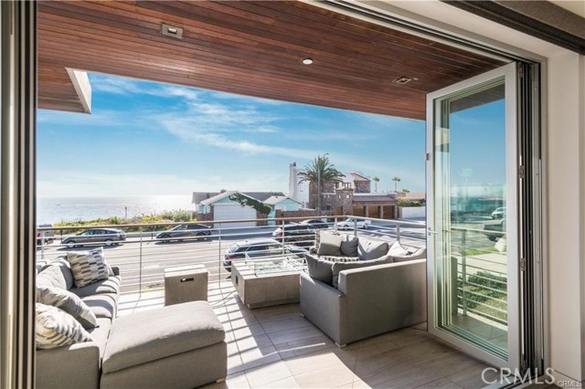 Lavishly Luxurious Condo with Breathtaking Ocean Views! Idyllically situated in a three-unit building, this 3BR/2BA, 1,950sqft first-row residence offers a feast for the senses with gorgeous contemporary architecture and lush tropical landscaping. Recently built in 2017 and thoughtfully designed by renowned designer, Kimberly Colletti, the interior captures the essence of chic modern living with an open concept floorplan, oversized windows, premium finishes, beautiful wood flooring, recessed lighting, and an expansive great room with a custom fireplace. Equipped to satisfy even the most discerning, the open concept gourmet kitchen features top-of-the-line stainless-steel appliances (Wolf and Sub-Zero), cabinetry, a breakfast bar, a wine cellar/wet bar, and a glamorous dining area with a chandelier. Explore further to discover an oversized primary bedroom with ample closet space and an ultra-luxe en suite boasting a standalone soaking tub, a glass enclosed shower, and a dual sink vanity. Two additional bedrooms are generously sized, while both guest bathrooms impress with lavish style and superior function. Unsurpassed entertaining possibilities abound in the fully enclosed backyard, which has a built-in BBQ and a lovely conversation area. Savor the glorious sunset views over the Pacific on your sprawling oceanfront deck. Other features: attached 2-car garage, laundry area, security system, SMART home technology, close to trendy dining and shops, and more! Call now for a tour!