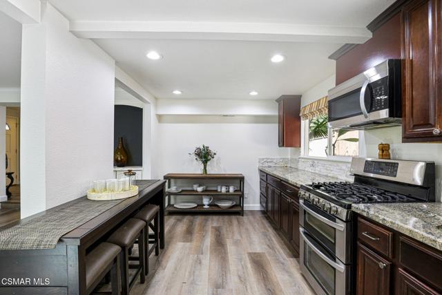 Welcome to this amazing sanctuary in Oak Park! This beauty has been recently painted (interior) and boasts new flooring, an expanded kitchen with granite countertops and stone backsplashes, stainless steel appliances and recessed lighting. Primary ensuite includes a walk in closet and spacious bedroom area in addition to the upgraded bathroom. Upgraded bathrooms throughout, ceiling fans in all bedrooms, wrap around backyard. Community pool and spa. Perfectly nestled in a cul de sac near Deerhill Park which features pickleball courts, basketball, baseball and soccer fields as well as play areas and walking paths. Down the street from hiking trails and more. Located within the Oak Park Unified School District, (Ventura County)which is rated 10/10 by Great Schools! 13 miles to Malibu beaches.