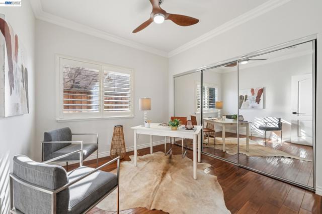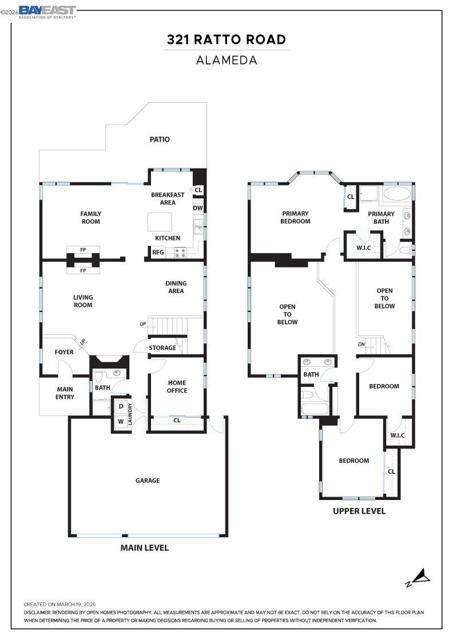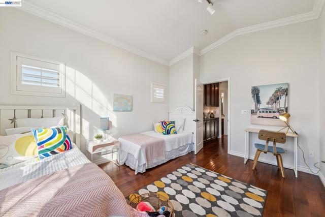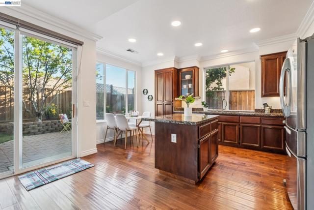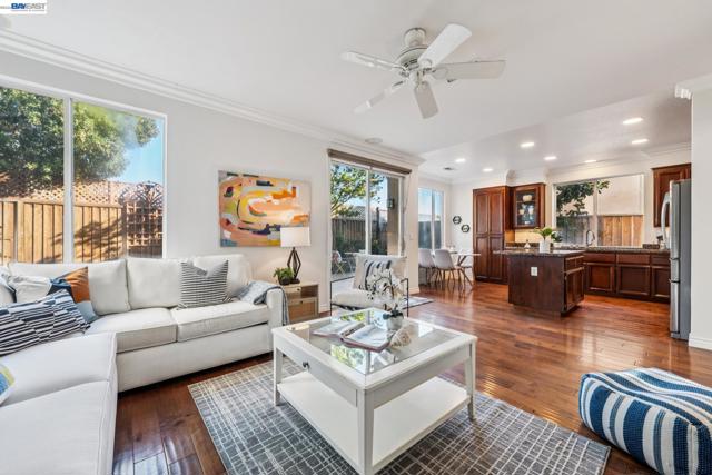 Stunning 4-bedroom Mediterranean home facing the lagoon trail on a cul-de-sac location. Upon entering through the impressive front door, you and your guests will be captivated by the soaring cathedral ceiling with center by a fireplace creating a relaxing atmosphere. The abundant windows allow natural light to flood the home. The main level features one bedroom and full bath. The open layout of the living and dining areas is ideal for family gatherings. The gourmet kitchen features ample cabinetry, stainless appliances, and a cozy breakfast nook that overlooks the backyard. The family room and kitchen are complemented by a generous 9-foot ceiling. The spacious family room with a two-way fireplace looks out to the backyard. You will appreciate the oversized primary bedroom with a walk-in closet and a spacious primary bath. Additionally, the 3-car garage includes area suitable for a workbench. Situated on a quiet cul-de-sac next to a community playground, top schools, close to Oakland Airport, ferry boat to San Francisco bay and lagoon trails.