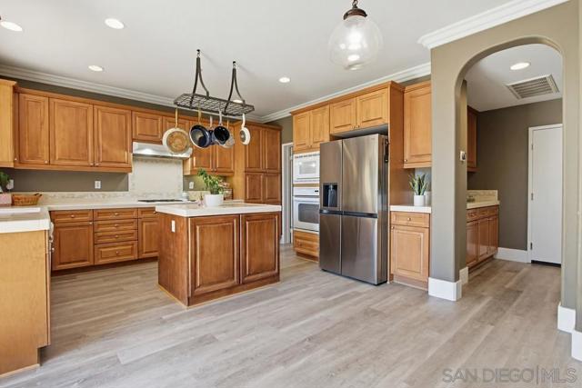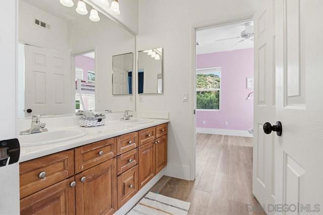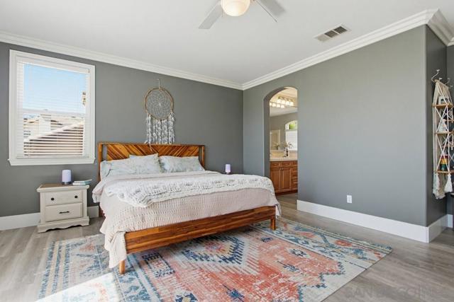 Gorgeous private 5-bedroom, 3-bath home located in the highly sought-after gated community of Rancho San Pasqual. This unique and versatile floor plan features 2 bedrooms on the main level with a full bath, formal dining room, living room, and spacious family room—perfect for multi-generational living or guests. Upstairs offers 3 additional bedrooms, including a luxurious primary suite with a large walk-in closet, plus a convenient laundry room and a loft area—ideal for work or study. Situated on a premium corner lot within a quiet cul-de-sac, this home offers exceptional privacy with neighbors on only one side. Enjoy stunning valley views from the backyard, kitchen, and all three upstairs bedrooms. Recent upgrades include new garage door motors for added convenience and peace of mind. The yard has been cleared of trees and shrubs, offering a blank canvas to design your dream outdoor space and customize the home to your personal taste. Rancho San Pasqual is ideally located just minutes from shopping, freeways, wineries, and local attractions. Residents enjoy access to resort-style amenities including a community pool, Olympic-size pool, basketball court, fire pit, and playground. The community is set along a beautifully updated golf course and nestled in the scenic foothills of Palomar Mountain. Families benefit from the highly regarded San Pasqual Union School District (Pre-K through 8th grade).Additional highlights include low HOA fees and no Mello-Roos. This hidden gem offers a perfect blend of privacy, views,convenience.List of upgrades in the remarks.Assumable VA Loan Assumable VA loan for $846,000 at 2.5% interest rate. Upgrades: 1- Brand new AC Unit and heat furnace within the last year 2-New Kitchen sink faucet 3-New bathroom faucet downstairs bathroom 4-All toilets have been replaced within the last two years 5-Brand new floors with baseboards throughout the house.