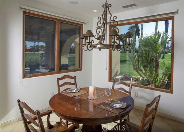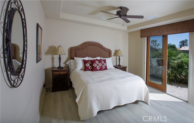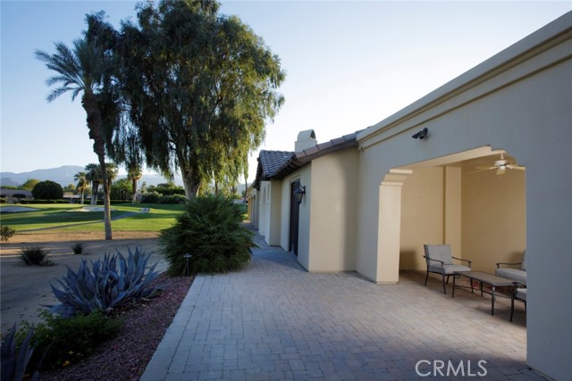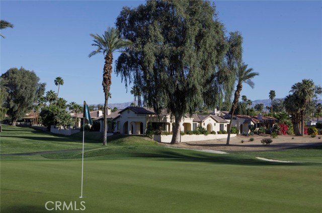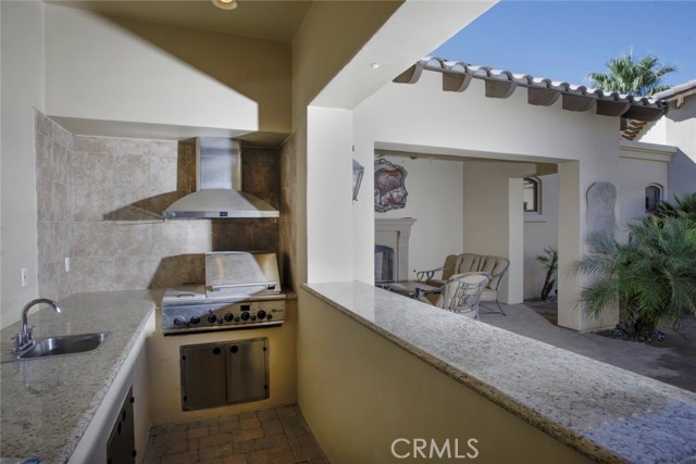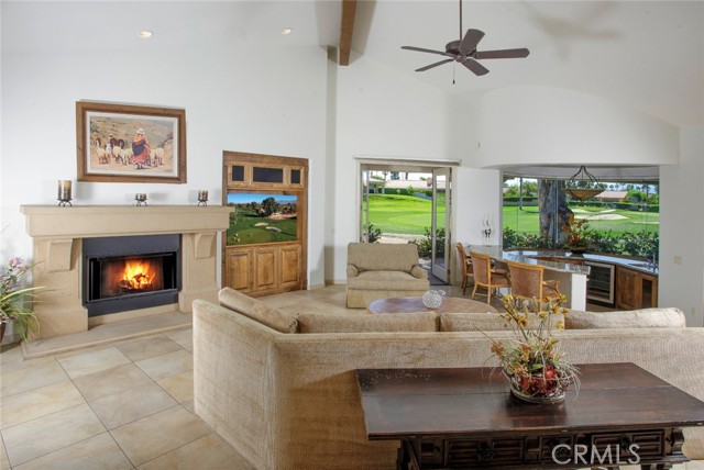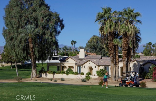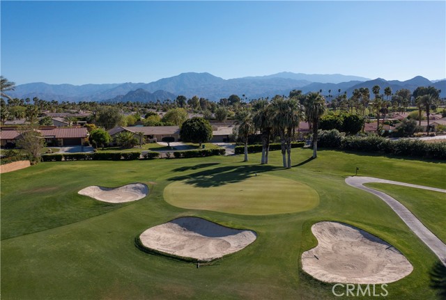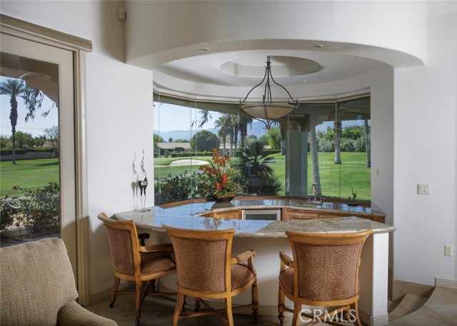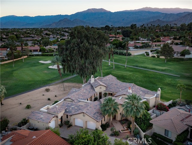 Bermuda Dunes CC – Castle Harbor. This residence occupies a truly rare position, defined by approximately 309 feet of golf course frontage spanning two fairways and a highly sought after south facing orientation, delivering all-day natural light and warm sun filled rear exposure across the pool, outdoor living areas, and primary interior spaces. Set on a premier corner lot overlooking the par-3, 7th hole of the Classic Course, the home captures an ever changing canvas of multiple fairways, the 7th green, and the Santa Rosa Mountains. The home is intentionally designed so that every primary living space opens to golf course views, creating a seamless connection between interior spaces and the surrounding landscape. Recently refreshed with a curated palette of new interior paint and updated flooring, the home presents a renewed sense of cohesion and sophistication, allowing its architectural scale and setting to take center stage. A hand-forged custom entry door introduces the home with a sense of permanence and craftsmanship, opening to a private courtyard where water, fire, and stone create an atmosphere that feels both composed and personal. The pool and spa, framed by cascading waterfalls, anchor a setting designed for experience and sunlit afternoons, golden-hour gatherings, and the rhythm of desert living. Inside, the architecture reveals itself through volume and light. Walls of glass draw the outdoors inward, dissolving boundaries and framing uninterrupted views, amplified by the home’s dual fairway frontage and south-facing orientation. The great room is expansive yet grounded, centered by a statement fireplace and an entertainer’s bar that becomes a natural point of convergence. The kitchen is conceived as both workspace and social core, equipped with professional-grade appliances and generous surfaces, yet oriented toward connection to the adjacent dining spaces and landscape beyond. The primary suite is set apart as a private retreat, where scale softens into intimacy. A sitting area with fireplace, dual walk-in wardrobes, and a thoughtfully arranged bath create a sequence of spaces that feel both refined and restorative. A separate flex room suited for wellness, dressing, or quiet retreat extends the experience. Guest accommodations are designed with equal intention. Within the main residence, secondary bedrooms offer comfort and discretion, while a detached casita introduces independence, ideal for extended stays or multi-generational living.