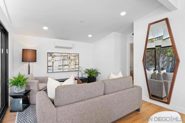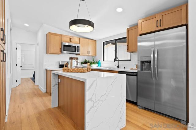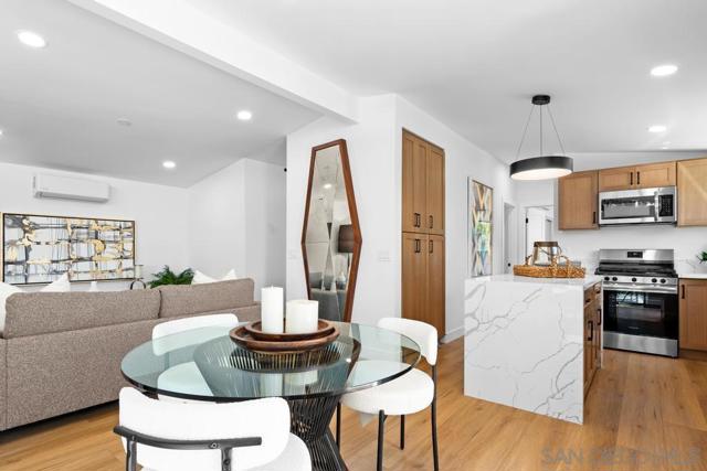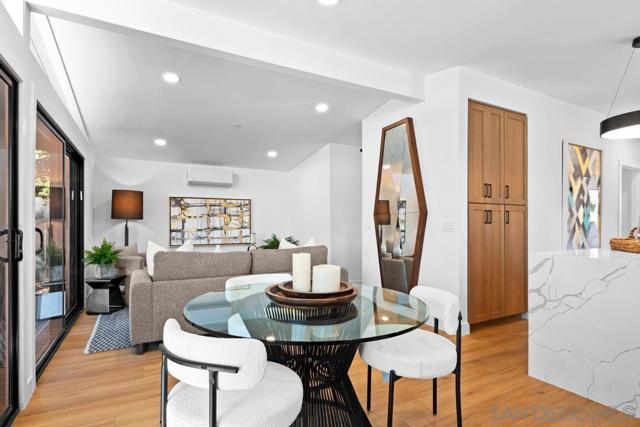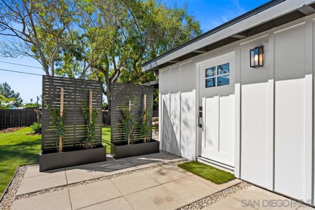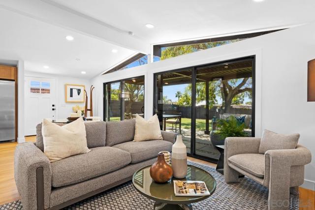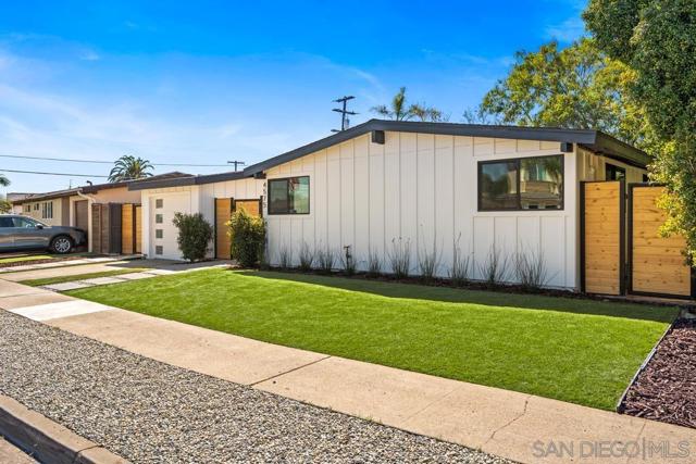 Modern Luxury Meets Mid-Century Charm in Clairemont. Step into a thoughtfully reimagined sanctuary where modern sophistication meets effortless coastal living. This 3-bedroom, 2-bathroom home has been transformed with a level of detail rarely seen. The heart of the home is a stunning, open-concept kitchen featuring premium alder cabinetry, a fully functional island, and stainless steel appliances. The interior is defined by soaring vaulted ceilings that create an immediate sense of drama and scale. Both bathrooms have been elevated into spa-inspired retreats, offering a serene escape with designer finishes. Beyond the aesthetics, no expense was spared on performance: a new roof, energy-efficient new windows, and multi-zone mini-split systems ensure year-round comfort. The finished garage with a sleek new door offers flexible space for a home gym or office. Step outside to a private 6,100 SF lot with ADU potential, featuring professional new landscaping and a magnificent backyard with billowing mature tree. Located in a premier Clairemont pocket, you are just a short stroll from the newly dedicated Officer Austin Machitar Memorial Park and the North Clairemont Recreation Center. Enjoy instant access to tennis and pickleball courts, youth sports leagues, and community events—all while being minutes from La Jolla and Downtown.