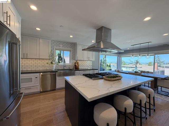 Rebuilt Belmont home blending modern luxury with timeless charm. Completely redesigned with over $700,000 in upgrades, this 4-br, 2-ba home offers 1,950 sq ft of refined living space on a beautifully situated flat lot w/ Bay views. The chef-inspired kitchen features quartz countertops, a generous center island, premium stainless steel appliances, wine fridge, and custom cabinetry. The open layout flows seamlessly to the formal dining and living room with fireplace—brightened by expansive windows, natural lights, and Bay views. The primary suite offers a serene retreat with a private bath. Wide-plank oak floors, designer lighting, and refined finishes create a warm yet contemporary ambiance. Upgrades include electrical, plumbing, gas lines, central HVAC, double-pane windows, owned solar, and EV charger, offering modern efficiency and long-term peace of mind. Enjoy a landscaped backyard oasis w deck, hot tub, BBQ, and level lawn- an ideal setting for relaxed outdoor gatherings. Located near Twin Pines Park, downtown Belmont, award-winning schools, scenic trails, and major commuter routes, freeway entrances, this exceptional home delivers the perfect balance of luxury, comfort, and convenience. A rare opportunity to own a truly turnkey Belmont retreat with style, space, and views.