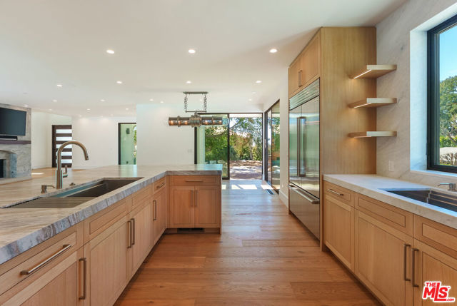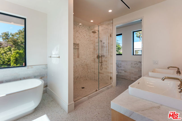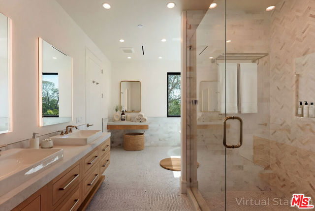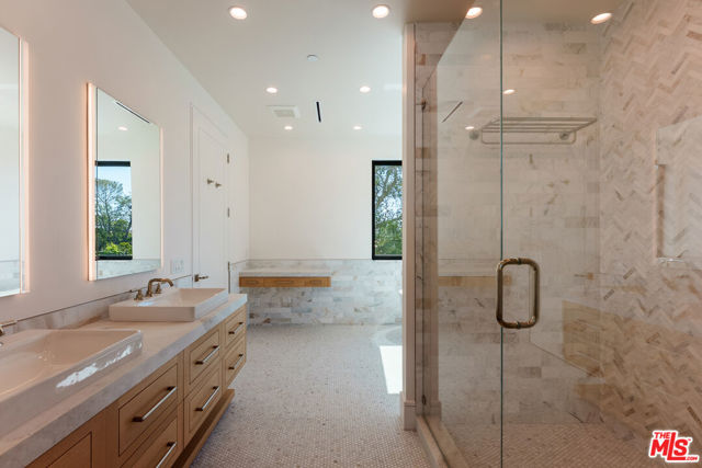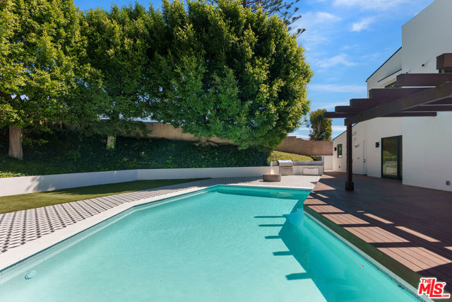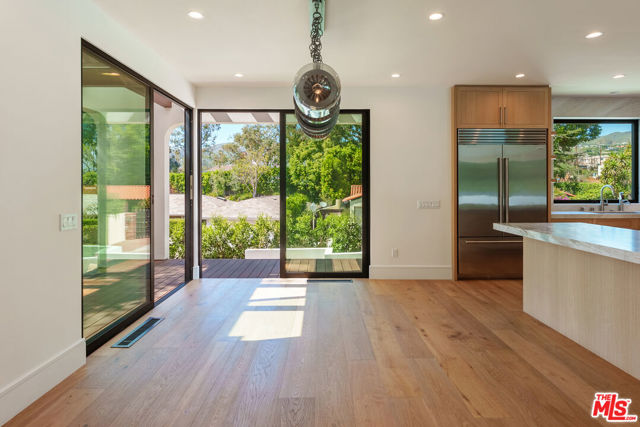 The Ultimate Palisades Retreat: New Luxury Estate Compound for Lease! Experience the pinnacle of Pacific Palisades living in this newly completed, beautiful 8-bedroom, 9-bathroom contemporary estate. Ideally situated in a highly coveted coastal enclave above the Bel-Air Bay Club, this thoughtfully designed sanctuary is a masterclass in modern luxury. This rare compound offers two distinct residences: a spacious, light-filled 5-bedroom main home and a premier, detached 3-bedroom guest house, providing unparalleled versatility for modern living. The spacious main residence is a showcase of designer details, featuring wide-plank hardwood floors throughout and anchored by a dramatic multi-story staircase with a stunning rose quartz crystal chandelier. The culinary-grade chef's kitchen features a massive stone island and top-of-the-line Wolf and Miele appliances. Designed for effortless California casual living and modern entertaining, floor-to-ceiling Fleetwood doors disappear to reveal a beautiful, flat, and ultra-private backyard sanctuary. This outdoor oasis features a sparkling pool and spa, fire pit, and professional DCS BBQ kitchen, all complemented by an outdoor shower and pool bath.Offering immense flexibility, the detached two-story, 3-bedroom guest house functions as a full-scale second residence (ADU), complete with its own designer kitchen, laundry, gated parking, and a private rooftop deck. Both homes are seamlessly integrated with a Sonos sound system extending across the grounds and rooftop decks; while professional-grade security, automated gates, Tesla Powerwall with solar, and EV charging ensure a secure, self-sufficient lifestyle. The estate is crowned by the main home's expansive rooftop deck, offering incredible panoramic views - including the Pacific Ocean and Santa Monica Mountains. Mere moments to the beach, the newly re-opened Palisades High School, and the soon-to-reopen Palisades Village, residents enjoy effortless access to world-class hiking, dining, and local essentials like the Vons on Sunset. This is a rare opportunity to lease a brand-new, beautifully curated compound for a minimum 13-month term in one of Los Angeles' most prestigious coastal pockets.
