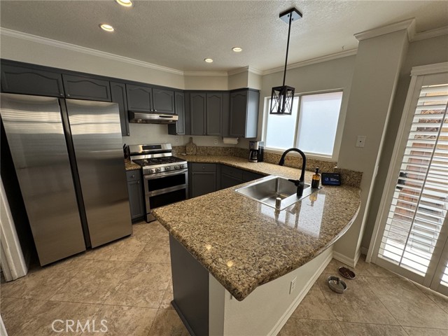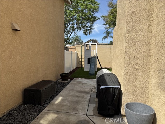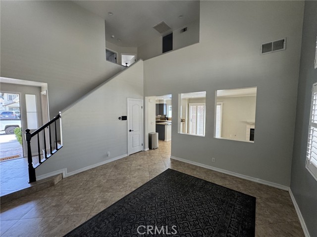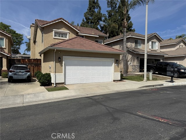 Welcome to this cozy two-story home located in the gated community of Parkside Green. Upon entering, you are greeted by a tiled entryway that steps down into the formal living room, featuring 20-inch ceramic tile flooring, cathedral ceilings, large windows, and decorative wall niches that create an open and inviting feel while leading into the relaxing family room. The family room offers a warm and comfortable atmosphere with a cozy fireplace with mantle, ceramic tile flooring, and wood shutters, making it the perfect space to relax or entertain. The kitchen is beautifully upgraded with stainless steel appliances, granite countertops, and a granite backsplash, and is conveniently located next to the laundry room. Step outside to enjoy the private backyard, which includes partial block wall fencing for added privacy. All bedrooms are located upstairs, where you can enjoy a balcony-style overlook to the living room below, enhancing the home's open layout. The home also features new laminate wood flooring throughout. The primary bedroom includes a walk-in closet, and all three bathrooms have been recently upgraded and remodeled, offering a modern and stylish look. Additional upgrades include crown molding, upgraded baseboards, and paneled interior doors throughout the home. Residents of Parkside Green enjoy a well-maintained gated community with three security gates, a park, basketball court, jungle gym, and large grassy areas for recreation. Ideally located in the city of Corona, this home offers convenient access for commuters traveling to Orange County and Los Angeles County.