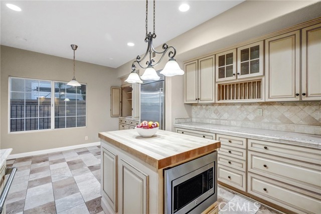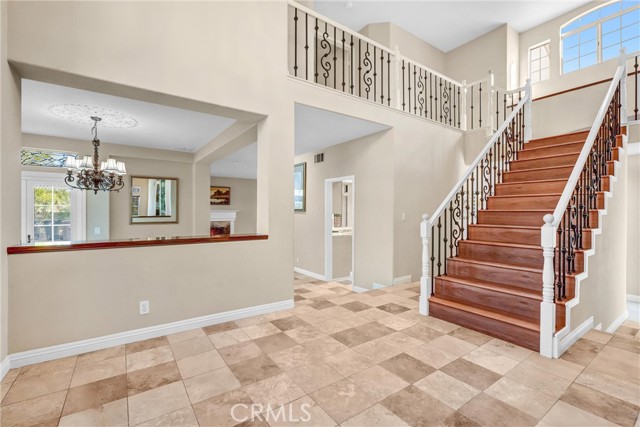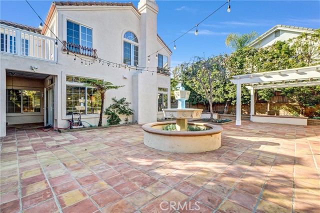 Nestled on a quiet cul-de-sac and situated on a desirable corner lot, this beautifully upgraded home offers a perfect blend of elegance, functionality, and comfort. Featuring 4 bedrooms, 2.5 bathrooms, and a thoughtfully designed open floor plan, this property is ideal for both daily living and entertaining. The home has been refreshed with brand-new carpets and laminate flooring, creating a clean, modern aesthetic. The formal living room impresses with soaring ceilings and a striking fireplace, while the cozy family room, also featuring a fireplace, opens seamlessly to the gourmet kitchen. The chef’s kitchen is a standout, equipped with premium appliances including a Sub-Zero refrigerator and a six-burner Wolf range. Additional features include a spacious island with a butcher block countertop, a breakfast nook, travertine flooring, and a built-in wet bar for convenience and entertaining. The first floor also boasts a second wet bar located near the formal living and dining rooms, offering added functionality and charm. A convenient laundry chute from the second floor connects to the first-floor laundry room, complete with a washer, dryer, and sink. Upstairs, the primary suite serves as a luxurious retreat, boasting a vaulted ceiling, a private balcony, and a fireplace. The en-suite bathroom is equally impressive, with a travertine vanity, soaking tub, walk-in shower, and dual sinks. An additional bedroom with a built-in desk offers versatility as a home office or study space. The backyard is a private haven with terracotta-style tile flooring throughout, perfect for outdoor relaxation or entertaining. A spacious patio provides ample room for dining and lounging, while a tranquil fountain adds a touch of serenity to the space. Solar panels enhance energy efficiency and help reduce utility costs. Conveniently located near top-rated schools, parks, shopping, dining, and major freeways, this home is truly move-in ready. Don’t miss the opportunity to lease this exceptional property!