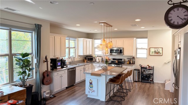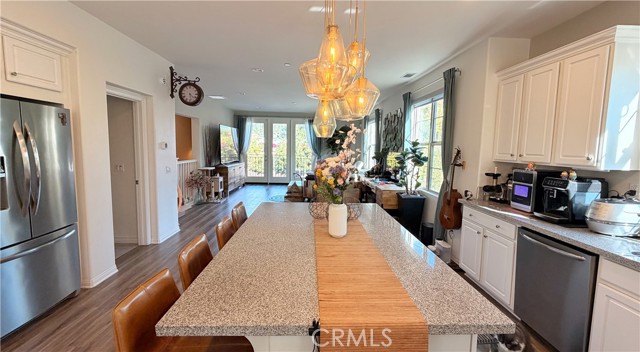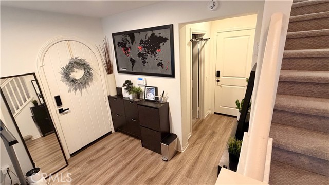 Three-sided natural light. A private backyard. Original owner since 2017. No Mello-Roos. This end unit at The Heights on Beverly checks boxes most buyers stop looking for after a while. Set in a quiet 40-unit community with only four homes per building, this tri-level end-unit townhome offers 3 bedrooms, 3 full baths, and 1,710 sq ft that lives larger than it sounds. End unit position means fewer shared walls, more windows, more light, and more privacy than anything else in the complex. The entry level welcomes you with a dedicated foyer and storage that keeps everyday life organized from the moment you walk in. The open second floor connects kitchen, dining, and living in one warm light-filled space anchored by wood flooring, a statement kitchen island, and designer multi-light pendant fixtures. The layout flows naturally and feels made for both quiet evenings and real entertaining. Upstairs, the primary suite features a Kohler rain shower system and natural wood cabinetry that brings warmth and a modern organic feel. Two additional bedrooms, a full bath with matching Kohler fixtures, and a dedicated laundry room with a stylish barn door complete the third floor. One bedroom is currently configured as a walk-in closet and will be restored to full bedroom use for the new owner. Designer touches are woven throughout. Custom wooden slat accent wall at the entry stairway. Edison-style fixtures in bedrooms and bathrooms. Elegant multi-light pendant fixtures on both stairways. Fresh interior paint. Window treatments including curtains and blinds throughout. Every detail was chosen with intention. Step outside to a paver backyard finished with a modern horizontal wood panel feature wall. Only six homes in this entire community have private outdoor space. This is one of them. Attached garage, no Mello-Roos, and a home maintained by one owner since the day it was built.