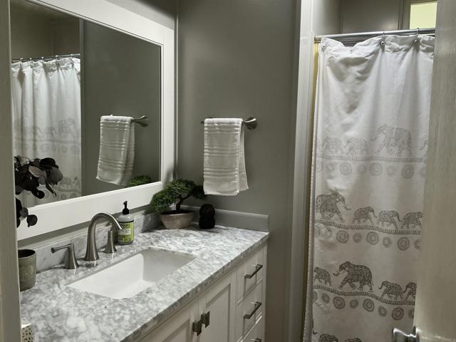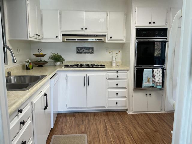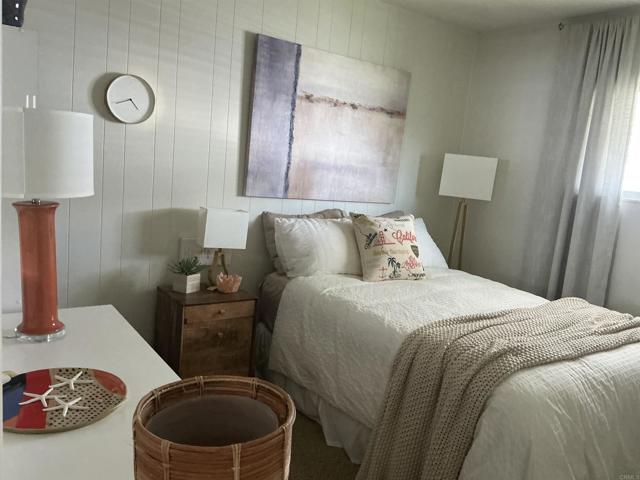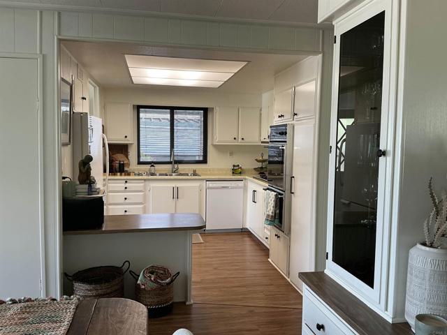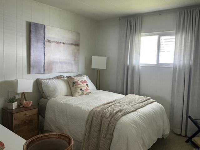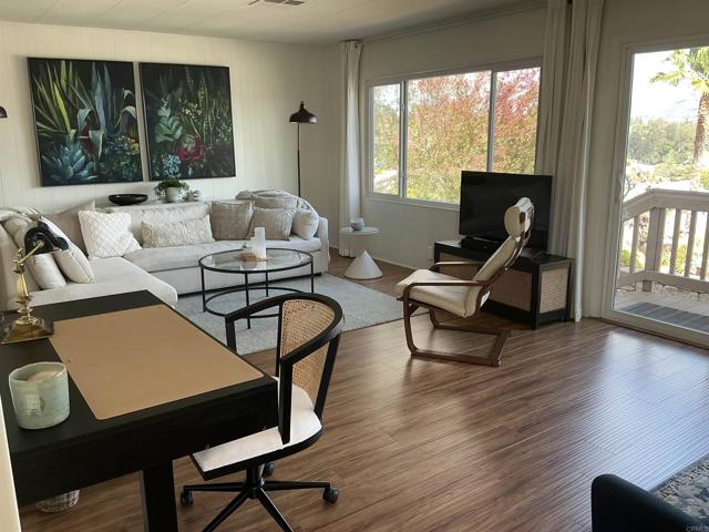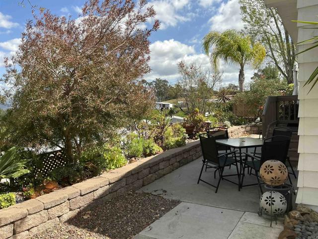 Incredible views! Fabulous lot! Such a charming property, the home is open and airy and inviting! AND a breathtaking view from the living room large windows, and sliding glass door to outside. When outside, soak in the outdoor living and entertaining area that is peaceful and serene. A short wall surrounds the L- shaped concrete patio with lovely landscaping of schrubs and succulents. These frame the panoramic views of the hills from east to west. Inside, beautiful wood laminate plank floors in the living area, all walls are painted white for a fresh, airy feel. All windows are dual pane white vinyl. Both baths have designer sinks/cabinetry & mirrors. Primary bedroom has a separate dressing area w/mirrored wardrobe, built in dressing table & cabinet with drawers. Widened driveway w/ curved carport supports.