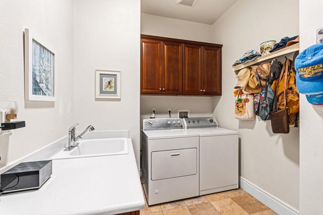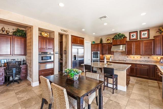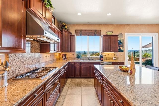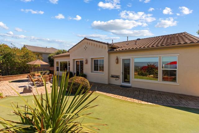 Sitting high within the gated community of La Costa Ridge, this stunning single story home, built in 2007, is the epitome of Carlsbad living! The indoor/outdoor flow of this home is amazing with two inviting courtyards in addition to the awesome back yard area. Enjoy panoramic views from the snow-capped mountains in the east to the blue Pacific Ocean and Batiguitos Lagoon in the west. The impressive kitchen features granite countertops, stainless steel appliances (including double ovens, a warming drawer, and wine refrigerator) and a large walk-in pantry and a separate wine storage area. Improve your golf game on your own putting green, relax at day's end on the raised seating area above the waterfall & pond with ocean views in the distance, and entertain with ease on the huge tumbled stone patio. The primary suite features amazing views, a cozy fireplace and an impressive bathroom with soaking tub and separate shower, as well as a huge walk-in closet. Each of the three bedrooms has ensuite baths, and one opens to the private front courtyard. The kitchen area also has a built-in home office cubby...perfect for today's digital work needs. The two care garage is oversized with plenty of storage. Solar is paid for in full.