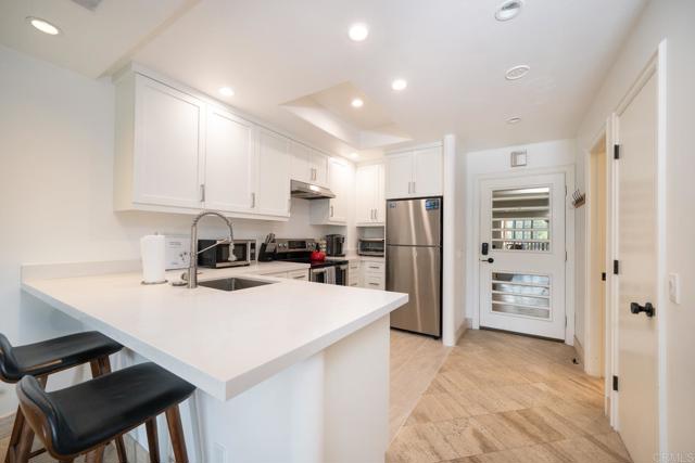 Turnkey Resort Living Investment at Omni La Costa. Stylishly updated 2 bedroom, 1.5 bath single-level residence is one of the few Carlsbad condos that allows short-term vacation rentals with no owner-occupancy restrictions, making it ideal for investors, second-home buyers, or full-time residents who want resort-style living with income potential. The open-concept remodeled kitchen features white shaker cabinetry, white stone countertops, stainless steel appliances, and a bar-height peninsula that flows seamlessly into the living area. Custom cabinetry throughout, vaulted ceilings with recessed lighting, black granite bathroom countertops and ceiling fans. The primary bedroom opens through sliding glass doors to a private balcony with resort views. The unit is sold completely furnished and ready for guests to move-in — the seller's established property manager is available to continue managing the unit for a seamless transition. Secured parking with elevator access, secure building entry, and resident-only pool and BBQ area. Walk to the Omni La Costa Resort's championship golf courses — host of the NCAA Division I Golf Championships through 2028 — world-class spa, tennis and pickleball courts, fine dining, and shopping. Minutes to Carlsbad and Encinitas beaches and the I-5 corridor