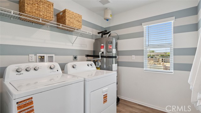 This spacious two-story 2,009 square foot home sits on a corner lot with a Santa Barbara facade. The home has a downstairs bedroom and full bathroom. The Island kitchen has granite counters, built-in stainless-steel appliances and pantry closet. The upstairs includes a large loft, primary bedroom with ensuite bathroom and walk-in closet, 2 additional bedrooms with walk-in closets, a full bathroom, and a laundry room. The interior comes complete vinyl and carpet flooring, and White shaker-style cabinetry throughout. This truly modern home has all the Smart Home features you would expect with a direct-access 2-car garage pre-plumbed for an electric car. The gated community features a pool, "tot lot" play area, and is situated approximately one mile Northwest of the lake and has nearby freeway access. We anticipate this home will be ready for move-in the end of June 2026.