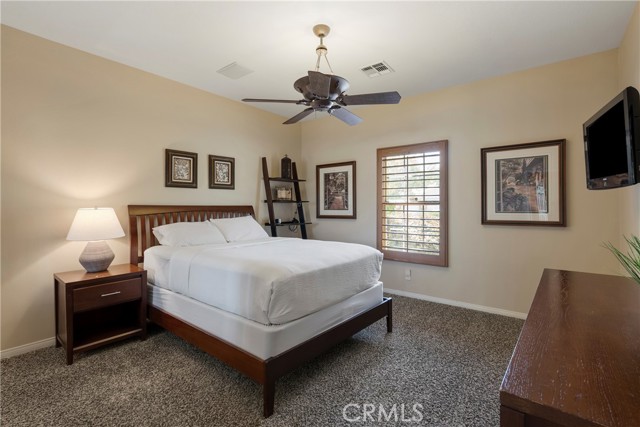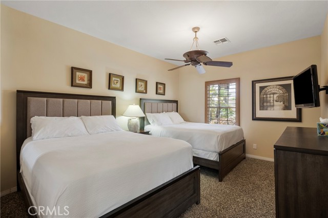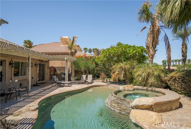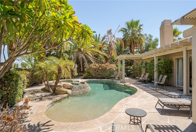 Outstanding Indian Springs golf course home! Situated at the end of a cul-de-sac and a large 10,000 sqft lot tropically landscaped backyard with PebbleTec salt system pool & spa and panaramic golf course and mountain views— ideal for entertainment & optimal relaxation. Upon entry, you will find a complete fully upgraded chef’s kitchen with double ovens, wine chiller, and walk-pantry, custom shutters throughout, a large living room with fireplace and seperate dining room area, two spacious bedrooms, and a large primary bedroom suite features a walk-in closet, and whirlpool tub. Other features include backyard exterior speakers, outside heater & mist system, an interior laundry room with ample storage, a large three car garage with epoxy flooring, two air conditioning units, and surround sound in the living room/dining room/kitchen areas. Super low HOA fees. This home is for sale fully furnished and move-in ready— perfect for your primary home, a second home for weekend gateaways, or a revenue producing vacation rental— this offering has it all!