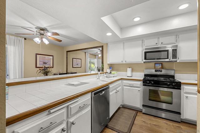 Coastal living at its finest in the highly sought-after community of Carlsbad Crest. Two bedroom, 1.5 bath, first floor, one story unit! Current owner has occupied the home for nearly 20 years lovingly maintaining and updating it. Step inside to find a light-filled interior as the sun passes overhead. Dual pane windows and upgraded hardwood flooring in main areas. Open kitchen boasting stainless steel appliances, ample cabinetry, and a functional design that will delight any home chef. Newer HEAT PUMP and A/C units installed. Fireplace in living room area. Ceiling fans in dining area and bedrooms. Serene primary suite offers a private bath and ample closet space. Outside, step on to your covered patio to enjoy a beautifully landscaped greenbelt with a community pool and spa close by! Great area to enjoy soaking up the Southern California sunshine. Peek-a-boo ocean view as you gaze to the west! Covered and assigned parking space with a storage room included! Extensive guest parking spaces in this area of the community. This well maintained residence offers the perfect blend of comfort, style, and convenience—just minutes from the beach, top-rated schools, vibrant shopping and dining destinations and the I-5 freeway. Whether you're looking for a primary residence, a vacation retreat, or an investment opportunity, this is a place to call home. Experience the best of Carlsbad living—schedule your private tour today.