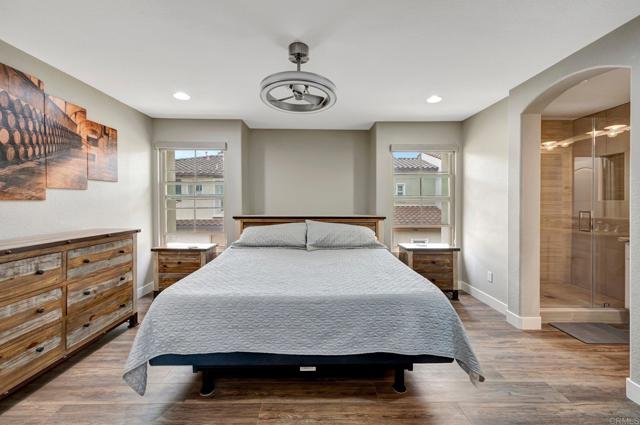 Modern perfection! A masterpiece in Old Creek Ranch Larkspur Heights. Quiet private location. $65,000 of upgrades galore. All new luxury vinyl planking wood flooring throughout. Designer paints. Smart house - recessed LED lights work with Alexa commands, smart garage door opener, exterior and interior doors work with smart codes, nest thermostat system. Luxurious all gorgeous custom modern large scale tiled walk in showers with large square upgraded shower heads. Gorgeous kitchen with subway tile to the ceiling, GE Profile all appliances included, breakfast bar, farm sink, Edison pendant lights. Granite and quartz counters throughout. Fully finished 2 car garage with epoxy flooring, high end built in storage and safe racks. Modern minimalistic light fixture / ceiling fans that match throughout. Stairway custom sconce lighting. French doors. Bedroom on main entry floor with private enclosed patio. Walk in closet and mirrored wardrobes. Silhouette new matching modern roller shade window treatments throughout. Absolute turnkey luxury awaits the most discriminating buyers! Complex with community pool, jacuzzi and tot lot. Near amazing hiking trails. Best schools!