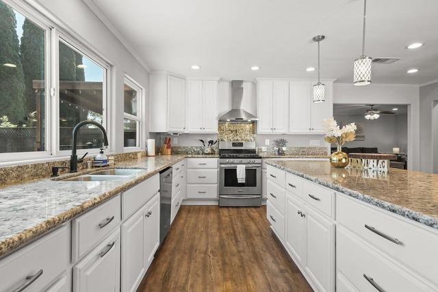 Welcome to your dream home in the highly desirable Rancho Del Rey Community! This beautifully upgraded 5-bedroom, 3-bath residence offers the perfect blend of comfort, style, and convenience. Step inside to discover a stunning, fully remodeled kitchen—the true heart of the home—featuring a massive island, modern finishes, and ample space for entertaining family and friends. The open-concept layout flows seamlessly into the dining and living areas, creating a bright and inviting atmosphere. With two bedrooms and a full bath on the first level, this home is ideal for multi-generational living, guests, or a private home office setup. Enjoy outdoor living at its finest in the immaculate, low-maintenance backyard designed like your own private park. Relax under the charming gazebo, entertain on elegant pavers, and enjoy year-round greenery with turf landscaping. Spacious 2-car attached garage, Two oversized storage sheds—perfect for all your storage needs. Located in a quiet, family-friendly neighborhood & close proximity to top-rated schools, parks, walking trails, shopping, and easy freeway access This move-in ready home truly has it all—style, space, and an unbeatable location. Don’t miss this opportunity—schedule your private showing today before it’gone!