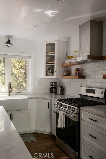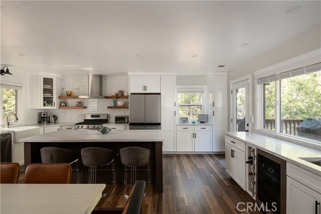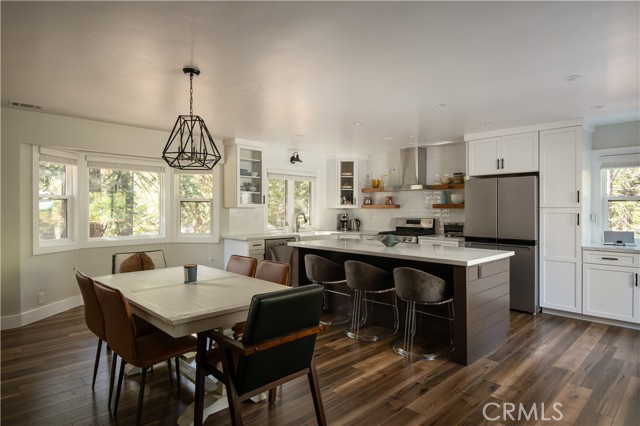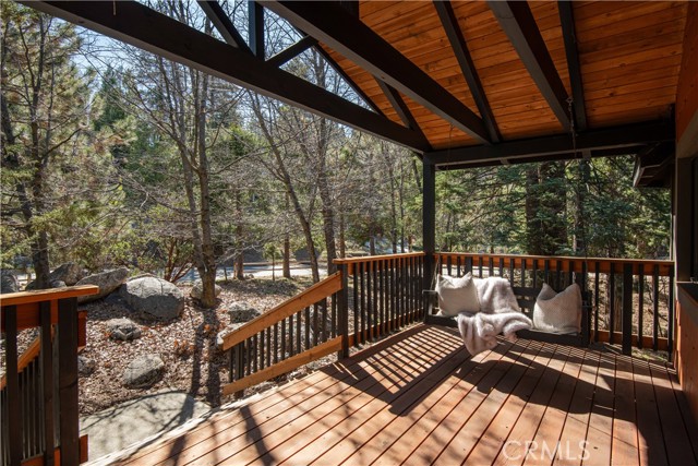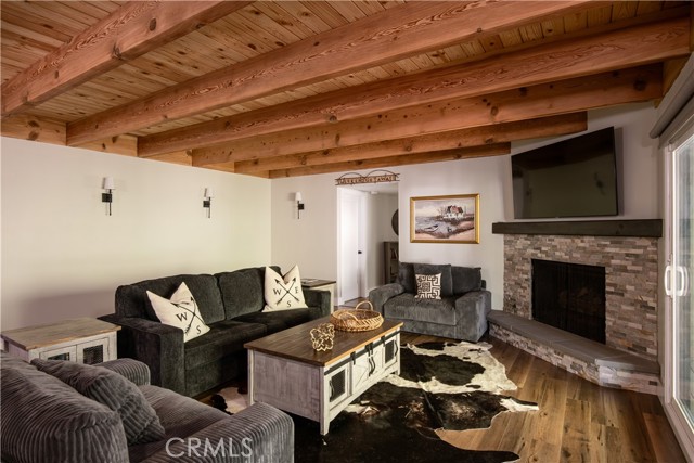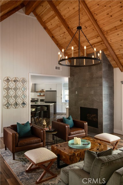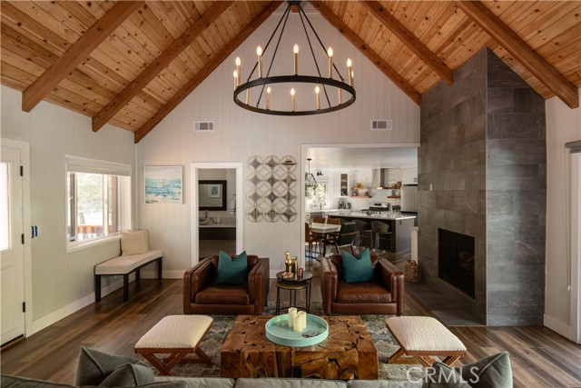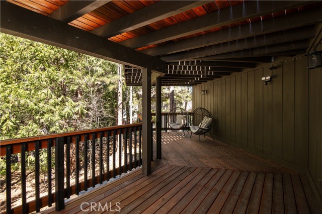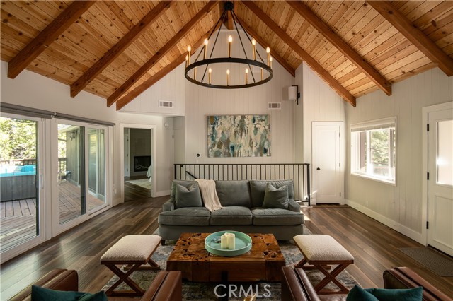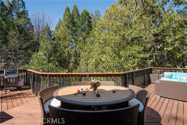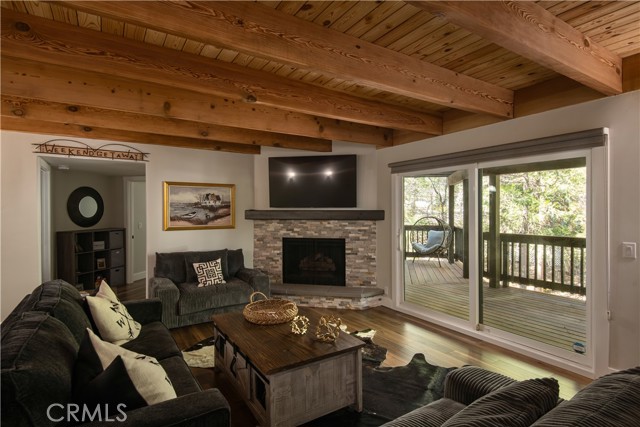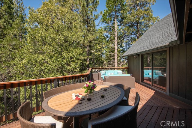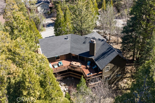 Introducing The Pinecrest Retreat—a refined modern mountain residence set on a coveted corner lot, where thoughtful design meets effortless living beneath a canopy of towering pines. This home does come with lake rights to Lake Arrowhead & has newly installed AC in 2022. Beautifully reimagined with a focus on both style and functionality, this home offers an ideal floor plan with the primary suite located on the main level alongside the kitchen and main living spaces, creating true single-level living rarely found in mountain homes. Downstairs, a spacious secondary family room and two well-appointed guest bedrooms provide the perfect layout for hosting while maintaining privacy and comfort for both owners and guests. Ideally positioned, the home includes highly sought-after lake rights to Lake Arrowhead and is just a golf cart ride away from the Lake Arrowhead Country Club, offering convenient access to golf, dining, and one of the area’s most desirable lifestyle amenities. Inside, rich wide-plank wood flooring, vaulted wood-beamed ceilings, and curated finishes create a warm yet elevated atmosphere that feels both inviting and sophisticated. The main living room is anchored by a striking stone fireplace and framed by expansive sliding glass doors that flood the space with natural light and seamlessly connect indoor and outdoor living. The kitchen flows effortlessly into the dining and living areas, making it ideal for everyday living, entertaining, and gathering with family and friends. The primary suite is a true retreat, offering peaceful forest views, direct access to the deck, and a spa-inspired bathroom featuring dual vanities, a soaking tub, and a custom walk-in shower with designer tile finishes. Every space in the home has been thoughtfully designed to balance comfort, function, and modern mountain elegance. Outdoors, an expansive wraparound deck unfolds into multiple entertaining areas for dining, lounging, and gathering around the fire, all surrounded by serene natural beauty and mature trees. Whether enjoying quiet mornings or hosting under the stars, this outdoor space delivers the ultimate mountain lifestyle experience. With its rare combination of layout, setting, and design, The Pinecrest Retreat is more than just a home—it’s a destination, offering the perfect blend of luxury, privacy, and year-round enjoyment in one of Lake Arrowhead’s most desirable settings.