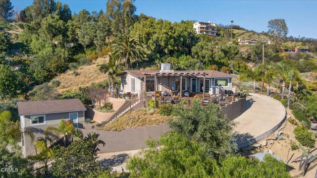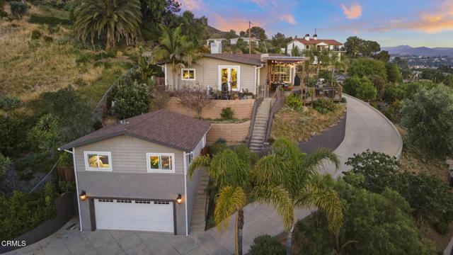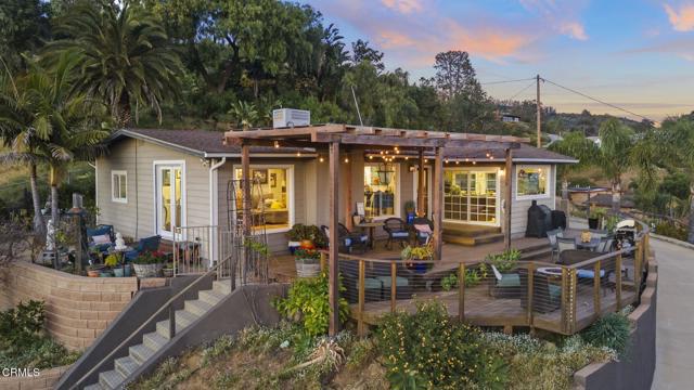 A truly special offering that doesn't come along often... an in-town vineyard retreat with sweeping ocean and mountain views all the way to the Channel Islands.This charming California bungalow blends comfort, flexibility, and an incredible lifestyle in one unique property. The main home features 3 bedrooms, 2 bathrooms, and approximately 1,418 square feet filled with natural light and an easy, welcoming flow. The kitchen is beautifully updated with high-end appliances, soap stone counters, Wolf 6-burner range, wine fridge & sub-zero freezer drawers. Kitchen opens to the living spaces, creating a perfect setting for everyday living and entertaining. Expansive windows frame the amazing views and bring in those unforgettable sunsets, while the newer HVAC system (2023) adds modern comfort.One of the standout features is the detached bonus oversized LOFT above the 2 car garage, a private retreat complete with its own bathroom and kitchenette, and finished with stunning features including handcrafted Moroccan tile. It's an ideal space for guests, extended family, a private office, or potential rental income.Step outside and you'll feel like you've escaped to your own private retreat. The expansive front deck is perfectly positioned to take in the views, a gas lantern adds ambiance & charm, plus deck is completely fenced. While the 150-vine mini vineyard with Cabernet and Sangiovese grapes adds to the charm and experience. Multiple outdoor spaces invite you to relax, entertain, and enjoy--whether it's a quiet morning by the garden fountain or an evening gathering under the sky.Additional features include a 2-car garage, RV parking area, and a Tuff Shed for added storage and functionality.All of this, just a short distance to town, offering the perfect balance of privacy, beauty, and convenience.Homes like this are rare--and this one is truly something special.Additional features but not limited to: new insulated attic rodent sealed, guaranteed & free for life of home. Motion lights & alarms in back & side plus wired ring door bell. Front slope features a Chicken coop and rabbit pens