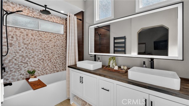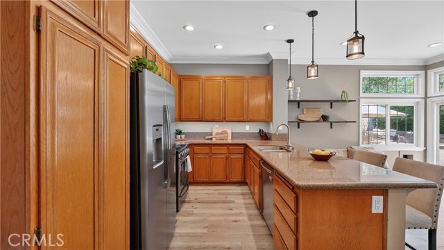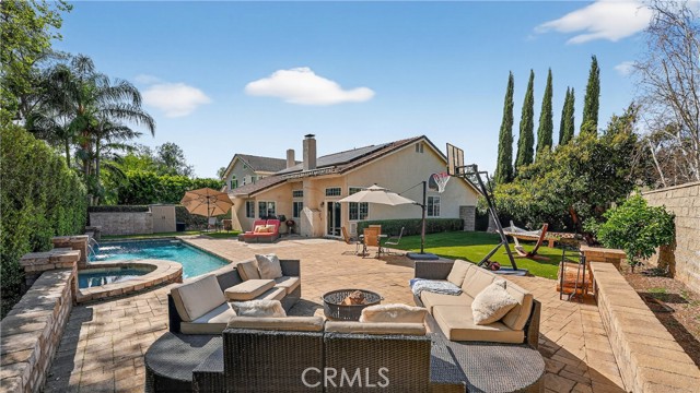 Paid-off solar, a stunning saltwater pool and spa, and an oversized lot set the stage for this beautifully upgraded home in the highly desirable Robinson Ranch community. Perfectly located just a short walk to Robinson Ranch Elementary School, this exceptional property offers the ideal blend of lifestyle, comfort, and thoughtful upgrades. Over the years, the home has been meticulously improved. In 2015, upgrades included all new windows, a smart Nest thermostat system, and attic storage with ladder access in the garage. In 2017, the guest bathroom was fully remodeled with custom tile work, a pocket door, towel warmer, lighting controls, and a walk-in shower with a two-way valve. The outdoor space was also transformed with new landscaping, mature avocado and lemon trees, pavers, and artificial turf, creating a private setting. Additional improvements included the paid-off solar system valued at approximately $30,000, custom laundry shelving and cabinetry, a new garage door, and automated Lutron front window coverings. In 2020, the home continued to evolve with the addition of a beautiful saltwater pool and spa featuring custom stonework and waterfall accents, all controllable through the Pentair app. Other enhancements included upgraded landscape drainage, dimmers throughout, window coverings, recessed LED lighting, and a whole-home Pentair water filtration and softening system. In 2022, the home received a stylish refresh with luxury vinyl plank flooring, new interior paint including doors and hardware, new baseboards, and updated ceiling fans. In 2025, the primary bathroom was completely remodeled with dual sinks, custom cabinetry, designer tile, a pocket door, towel warmer, lighting controls, a lighted mirror, and an oversized soaking tub with a three-way shower/tub valve. The primary and secondary closets feature custom built-ins, and the home was repiped with PEX. Additional enhancements include updated landscaping, a house-mounted speaker system with landscape subwoofer, and a Nest/Google smart doorbell. Residents of Robinson Ranch enjoy a remodeled community pool, pickleball and tennis courts, scenic parks, and greenbelts for children and dogs. Located in Rancho Santa Margarita, one of the safest and most desirable cities in America, this home offers the perfect blend of comfort, community, and lifestyle.
