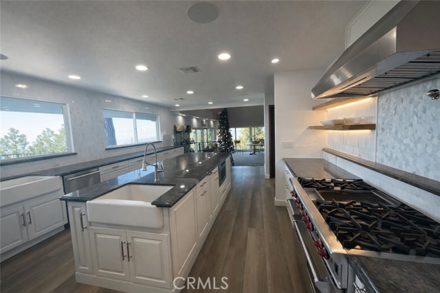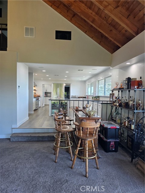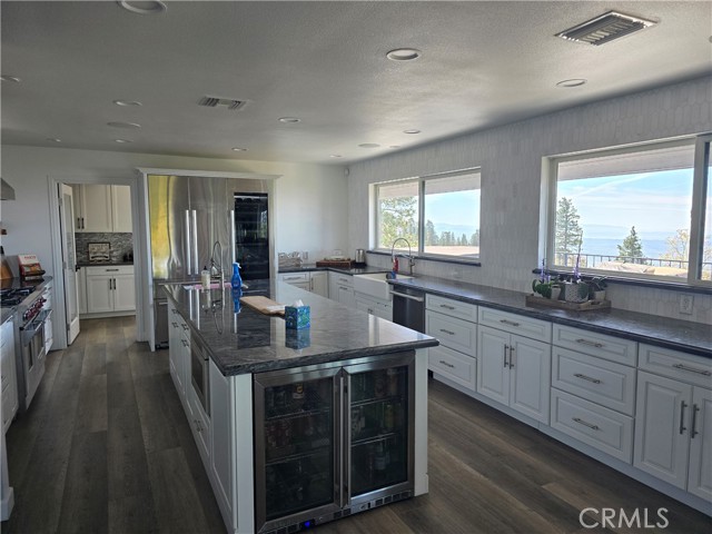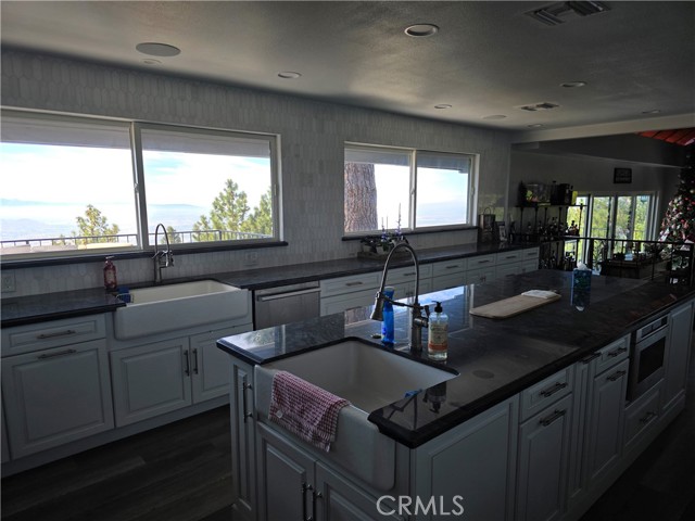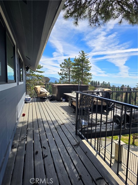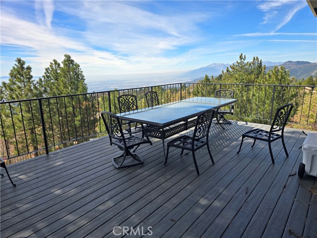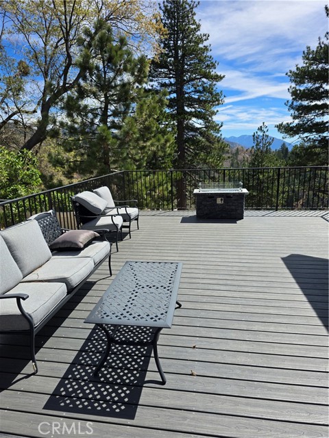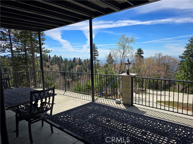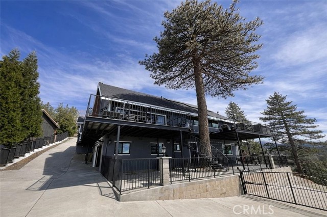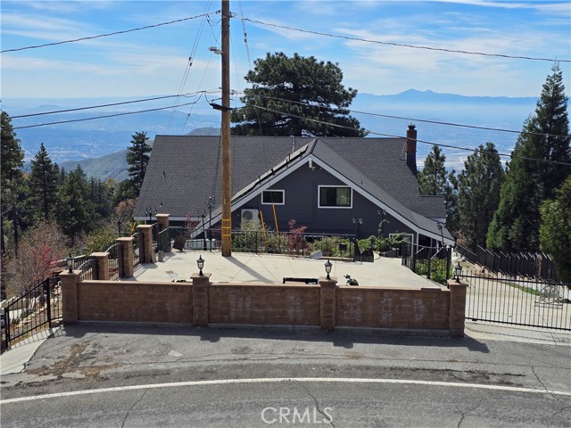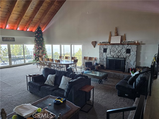 Mountain chalet estate situated on approximately 6.80 acres with expansive valley and mountain views, city lights, and the Pacific Ocean. near Running Springs and Snow Valley Ski Resort. Offering approximately 4,300+ sq ft of living space, this lodge-style home features a spacious open-concept great room with vaulted tongue-and-groove wood ceilings, exposed beams, and large windows that capture natural light and the priceless scenic vistas. The residence includes 6 bedrooms, 5 bathrooms, along with multiple living and entertaining areas. The updated kitchen features a large center island, farmhouse sink, stainless steel appliances, ample cabinetry, and extended counter space with unique quartz countertops with views. Additional interior highlights include a game room with a billiards area, bar space, and a remodeled bathroom with a soaking tub and a walk-in shower, and a rustic rock fireplace. Also, electrical updates, including a full solar system. newer heating/cooling high-efficiency system. Outdoor features include expansive decking and patio areas designed to take advantage of the surrounding priceless views, as well as an oversized two-car garage and extended driveway providing plenty of parking. The property consists of separate parcels, offering the potential for expansion, additional structures, or other uses (buyer to verify). Recent improvements include updated interior finishes, flooring, paint, plumbing (PEX), and roof. The grounds offer a natural setting with mature pine, oak, and cedar trees across gently sloping terrain. The current owners lovingly reimagined this home as a forever retirement sanctuary and poured their hearts into this Mountain retreat. refurbishing with the intention of retiring here amidst the stunning views. The seller's change of plans offers a unique opportunity for a new owner to step into a finished high-end property.