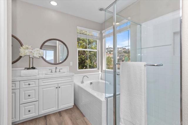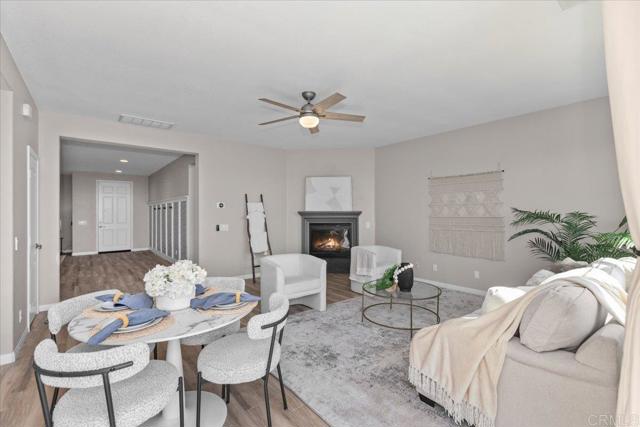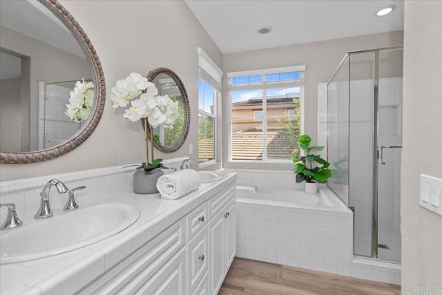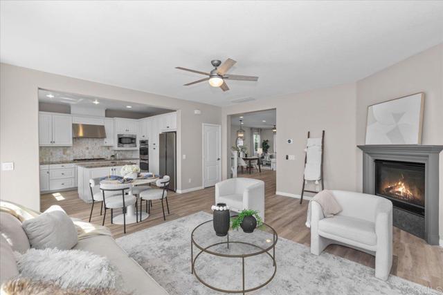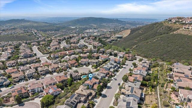 Enjoy sweeping ocean and sunset views from this beautifully maintained Terraza home in the highly desirable San Elijo Hills community. Offering 3 bedrooms, 2.5 bathrooms, and approximately 2,182 esf, the home features a functional, open layout with quality upgrades throughout, OWNED solar and low Mello-Roos! Interior highlights include wood-look porcelain tile flooring throughout the main level, offering the warmth of hardwood with added durability, along with spacious living and dining areas filled with natural light. A separate family room with fireplace opens to the kitchen, creating an ideal setup for both everyday living and entertaining. The kitchen features granite countertops, center island, stainless steel appliances, and updated finishes. Upstairs, the primary suite captures stunning ocean views and includes a large walk-in closet, dual vanities, soaking tub, and separate shower. Two additional bedrooms, full bath, and laundry room complete the second level. Thoughtfully positioned for privacy, the home offers a comfortable indoor-outdoor experience without direct sight lines into neighboring properties. Step outside to a private backyard designed to take full advantage of the views, complete with custom hardscape, artificial turf, and multiple entertaining areas. Enjoy evenings in the spa under café lighting, or host gatherings around the built-in BBQ island with grill, refrigerator, TV, and stone finishes. The setting offers a rare combination of privacy, usable space, and views! Additional features include owned solar, tankless water heater, and a 3-car tandem garage with Tesla EV charger. Located near parks, trails, town center, and top-rated schools! Low mello roos and HOA! New Double Peak K-8 school! ** San Elijo Hills--Community includes high ranking schools, ball parks, soccer field, picnic area, playgrounds, dog park, community center...and all are within walking distance. Enjoy the shops and eateries along with the 18 miles of trails & 19 acre park, 1000 acres of open space. Seller to select services. Room dimensions & sq footage are approximate, per builder & assessor's record. Mello-roos is estimated. All MLS & marketing info is approximate & not guaranteed.
