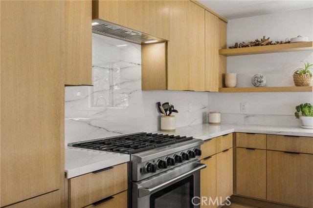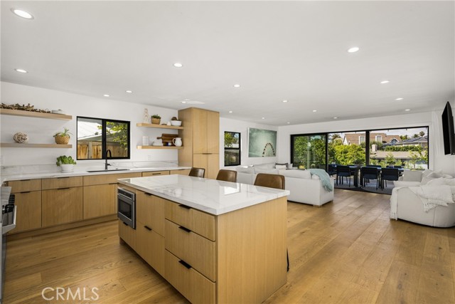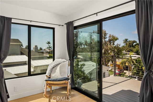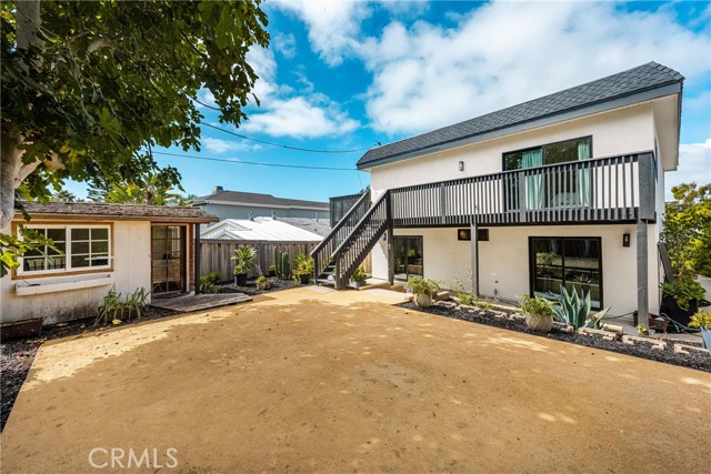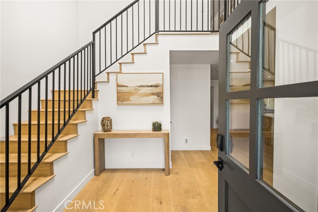 Welcome to this stunning 4 bedroom, 3.5 bath home showcasing a complete down-to-the-studs remodel finished in 2024. Every detail has been thoughtfully designed with high-end upgrades, including a recently updated roof, windows and doors, full HVAC system and ducting, tankless water heater, custom cabinetry, and French oak hardwood flooring. The spacious floor plan offers two bedrooms upstairs and two downstairs, with three bedrooms featuring en-suite baths for ultimate comfort and flexibility. The chef’s kitchen is a true centerpiece, with custom white oak cabinetry, built-in Miele refrigerator and freezer, Bosch dishwasher, Thor 36” gas range, a 7-foot island, and striking porcelain countertops and backsplash. Upstairs, the primary suite is a private retreat with a balcony offering ocean views, a spa-like bath with freestanding tub, and a 200 sq. ft. walk-in closet with custom built-ins. The upstairs laundry adds convenience, while outside you’ll enjoy mature olive trees along with lemon, lime, fig, guava, and orange trees for a touch of charm. This move-in ready home blends timeless design with modern luxury, offering a rare opportunity to own a turnkey property with every upgrade less than a year old.