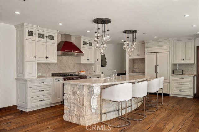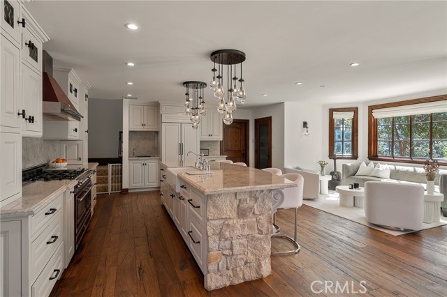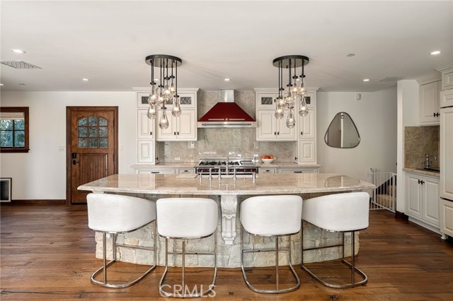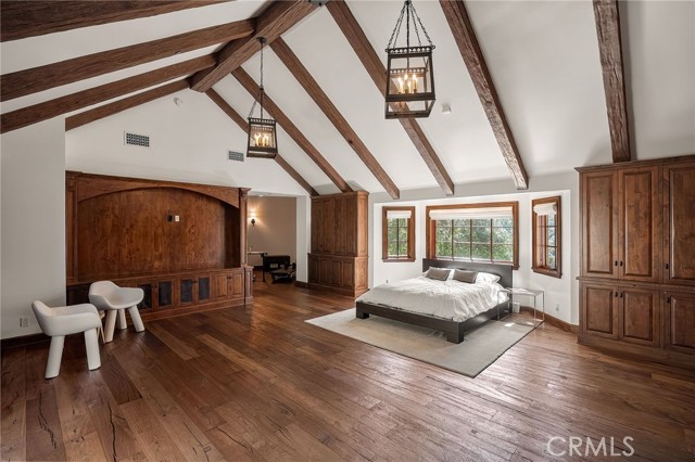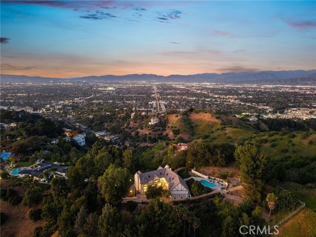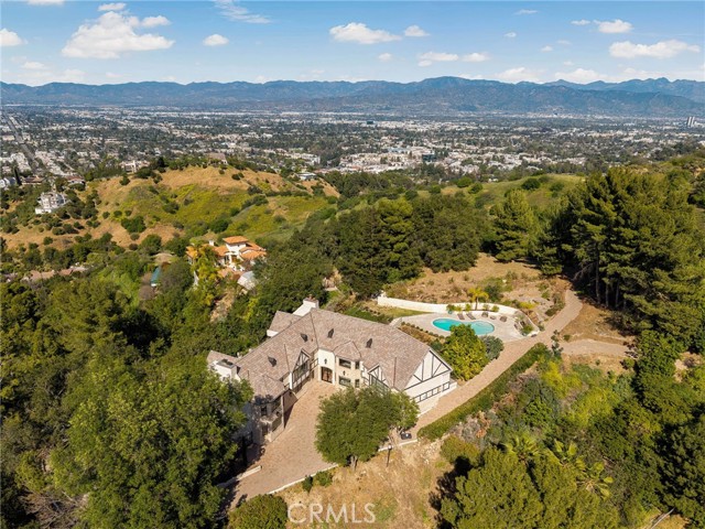 Perched on a hilltop above Studio City at the end of a private road with double gates, this one-of-a-kind estate offers nearly two acres of unparalleled privacy with sweeping panoramic views in every direction. A long, winding cobblestone driveway leads to a grand chateau-style residence that artfully blends timeless architecture with modern amenities. A dramatic double-door entry opens to an interior rich in character, featuring bespoke French wood floors, custom artisan cabinetry, wood-beamed ceilings and thoughtfully designed living spaces. The chef’s kitchen is a masterpiece, complete with a stone-clad center island, top-of-the-line appliances, a walk-in pantry, elegant designer finishes and a sun-drenched sitting area. Designed for both everyday living and grand entertaining, the kitchen flows seamlessly into a spacious formal dining room, while a warm and inviting living room is highlighted by an elegant fireplace and sliding glass doors that open to showcase commanding views of the Valley. Four generously sized bedrooms are thoughtfully spread throughout the home, including an expansive primary suite with a lavish ensuite bath and hidden room. Outdoors, the estate unveils a resort-like sanctuary, featuring a sparkling pool, multiple entertaining areas and expansive grassy lawns surrounded by lush, park-like grounds, all set against a backdrop of breathtaking vistas. Additional highlights include a laundry room, two-car garage and direct access to Fryman Canyon’s hiking trail. This prime South of the Boulevard location is within the top-rated Dixie Canyon School District and offers easy access to the Valley and Westside, prestigious private schools like Harvard-Westlake and Campbell Hall, and exceptional shopping and dining found along Ventura Boulevard.