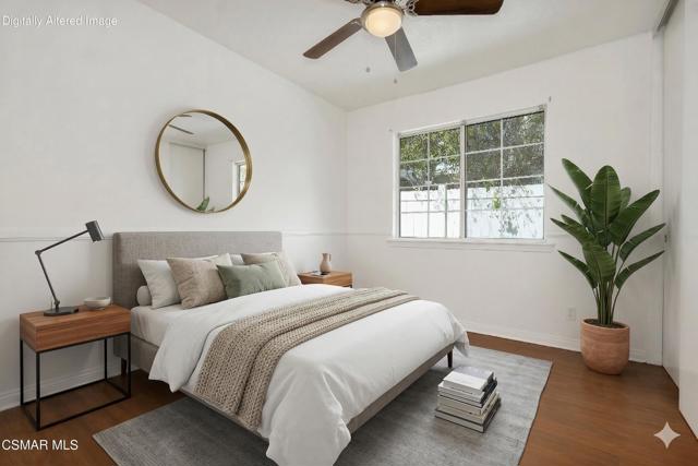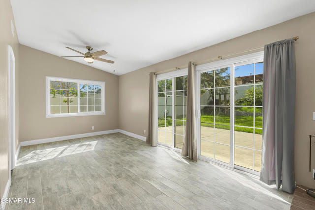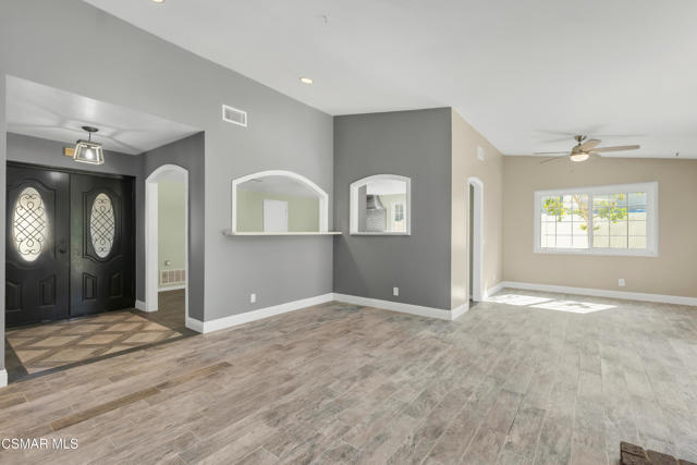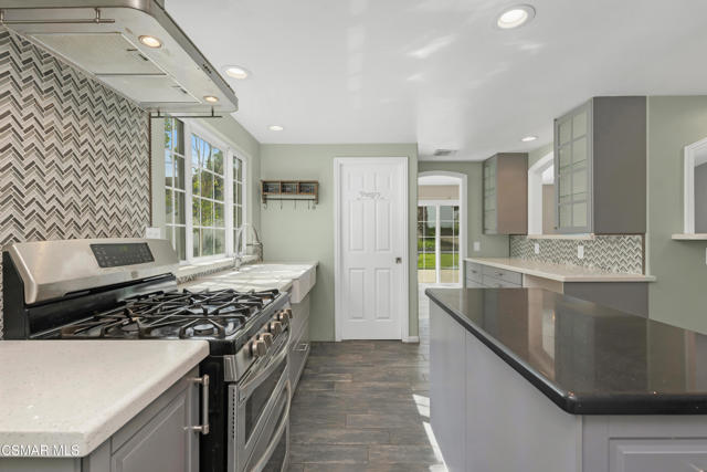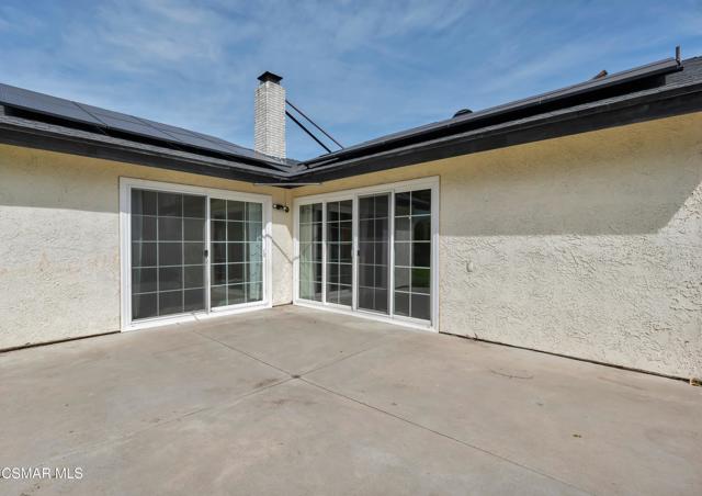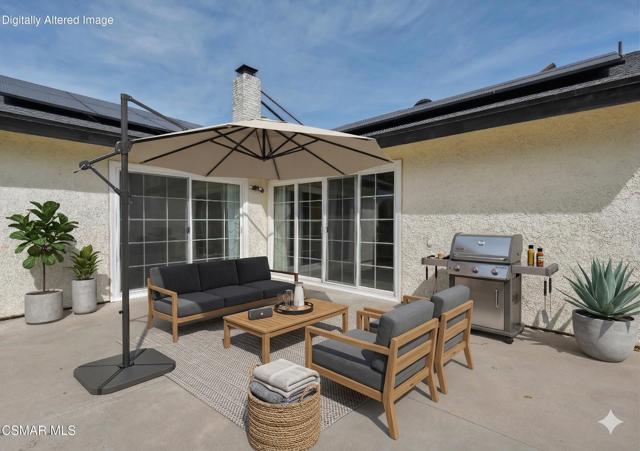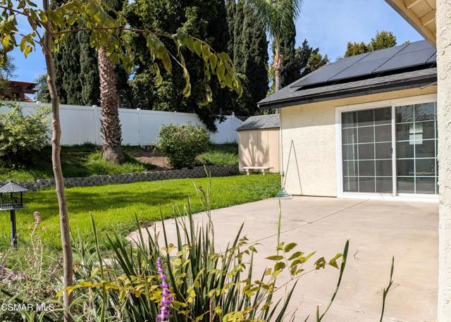 Welcome to this bright and inviting four-bedroom, two-bathroom single-story home nestled in a quiet cul-de-sac within the highly desirable Running Springs Village. This residence has been thoughtfully updated to provide modern comfort and efficiency, featuring newer tile flooring throughout and a sleek, remodeled kitchen. The heart of the home boasts newer cabinetry, contemporary counters, a newer stove and range hood, and a functional island, all complemented by a newer passthrough to the living area that enhances the open-concept feel. This spacious multipurpose living area is perfect for lounging by the fireplace, media entertainment, and hosting guests. The floor plan is airy and filled with natural light, showcasing smooth ceilings, recessed lighting, and ceiling fans. Comfort is a priority with central heating and air conditioning, and the added benefit of a solar system to help manage energy costs. Functional updates continue with newer front doors, a newer water heater, and newer perimeter vinyl fencing that secures the spacious backyard. The outdoor space is perfect for relaxation or storage, featuring a large yard with a handy storage shed. Residents will appreciate the two-car attached garage with direct access and additional storage potential. Located in the top-rated Conejo Valley school district, this home offers incredible convenience with close proximity to local shopping centers, diverse restaurants, pharmacies, and coffee shops. Enjoy easy access to the freeway and nearby parks, while being less than thirty minutes away from beautiful California beaches and expansive state parks. This property combines a peaceful neighborhood atmosphere with all the modern essentials for a comfortable lifestyle.
