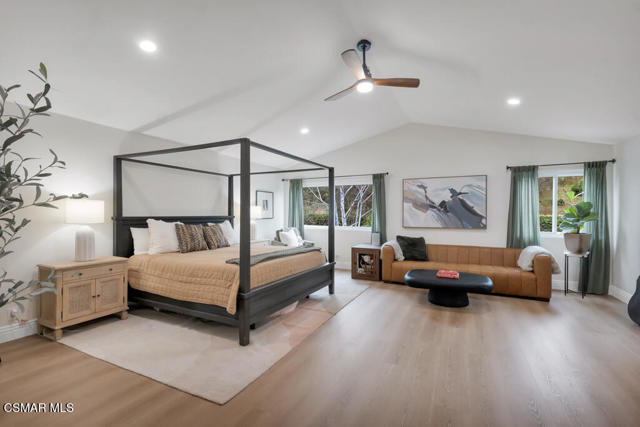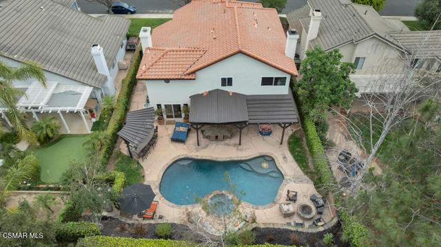 Welcome to 12208 Cherry Grove Street - a 4 bedroom, 3 full bathroom, true entertainer's delight pool home in one of the most desirable neighborhoods and cul-de-sac streets in the heart of Moorpark. Close to plenty of restaurants, top rated Moorpark schools, and shopping, this is an extensively upgraded, designer-finished home offering the perfect blend of luxury, comfort, and modern functionality. From the moment you arrive, you'll notice the thoughtfully curated exterior, enhanced lighting, freshly painted exterior, and fully refreshed landscaping, setting the tone for what awaits inside. The home features brand-new custom windows and sliding doors, light honey-toned waterproof luxury vinyl plank flooring throughout, fresh interior paint, designer baseboards, and upgraded lighting and fixtures that create a cohesive, elevated aesthetic. At the heart of the home is a stunning chef's kitchen, professionally designed with custom shaker cabinetry, striking Brazilian quartzite countertops and full-height backsplash, a massive island with bar seating, and a premium Dacor appliance suite including a six-burner range, double ovens, and drawer microwave, complemented by a Bosch dishwasher and Newport Brass fixtures . The luxurious primary suite offers a spa-like retreat with a freestanding soaking tub, high-end finishes, and a custom-designed closet system, while additional bedrooms and bathrooms have been tastefully updated with designer materials and thoughtful details throughout including a full bedroom and bathroom downstairs. Smart home features include dual-zone Nest thermostats and app-controlled pool systems, adding convenience and efficiency. With every detail carefully considered--from upgraded electrical and LED lighting to modern hardware and finishes--this home delivers a true turnkey experience with exceptional style and quality. Step outside to your entertainer's paradise - complete with a large outdoor barbeque and bar, fire pit, covered patio with exterior dining space, and sparkling saltwater pool and spa. Don't miss out on this masterpiece that you can move right in and enjoy!
