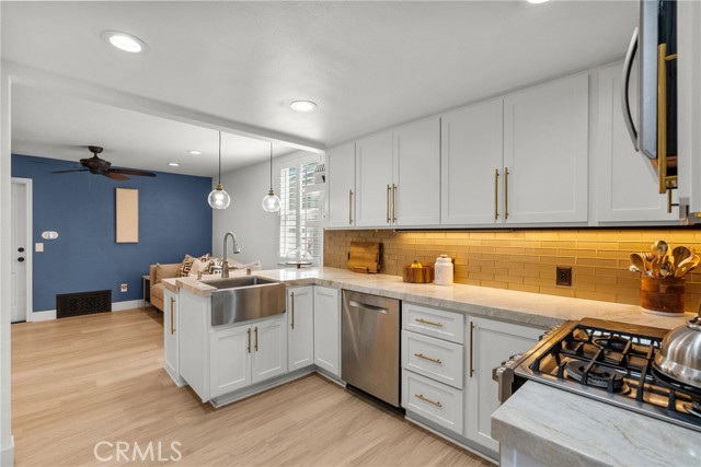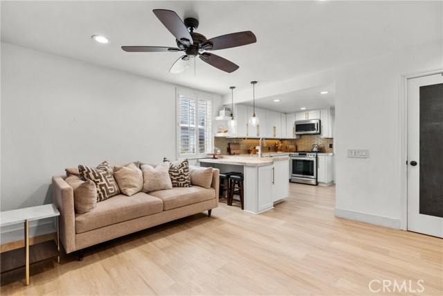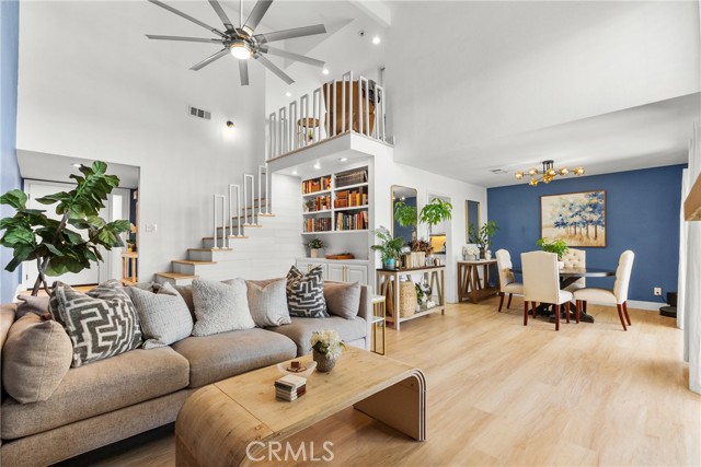 Step into this stunningly remodeled home nestled in the exclusive gated Vista Valencia community. Boasting 3 generously sized bedrooms, 3 bathrooms, and 2,059 sq ft of living space, this residence stands among the most spacious condos in all of Santa Clarita. Inside, you'll be greeted by dramatic vaulted ceilings and elegant luxury vinyl plank flooring that stretch throughout the home, creating a sleek and contemporary vibe. The chef-inspired kitchen features gorgeous granite countertops, crisp white cabinetry, and stainless steel appliances, seamlessly connecting to the open-concept family and dining areas—perfect for entertaining and everyday living. Downstairs includes a convenient ¾ bathroom, while upstairs offers a versatile loft space ideal for a home office, a serene primary suite with dual vanities in the ensuite bath, plus two additional bedrooms and a full hall bathroom. Additional highlights include an attached two-car garage with epoxy flooring and laundry hookups. Step outside to your private backyard patio—no rear neighbors!—ideal for relaxing or hosting guests. And when summer heats up, the community pool is the perfect spot to cool off. All this in the heart of Valencia, just moments from shopping, dining, and top-rated schools. This turnkey home blends modern elegance with exceptional convenience—don’t miss your chance to own it!