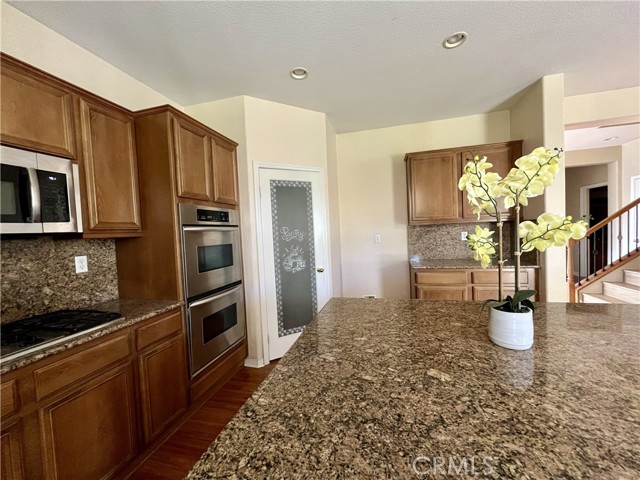 Located within walking distance to award-winning schools, this spacious 5-bedroom, 4-bathroom home sits in one of Eastvale’s most desirable neighborhoods, tucked away at the end of a quiet cul-de-sac on an expansive lot. Designed for both comfort and functionality, the home features a charming covered front porch, formal living and dining rooms, and a welcoming family room with a fireplace. The gourmet kitchen is equipped with stainless steel appliances, granite countertops, a center island, and a pantry, while a main-floor bedroom and full bath offer ideal flexibility for guests or multi-generational living. Upstairs, you’ll find a versatile loft, a generously sized primary suite with dual vanities, a soaking tub, separate shower, and dual walk-in closets, along with three additional bedrooms featuring new vinyl flooring and a convenient upstairs laundry room. The beautifully landscaped backyard is perfect for entertaining, complete with an Alumawood-covered patio, lush lawn, block walls, and mature greenery. Ideally located near shopping, parks, and freeway access, this home offers the perfect blend of location, lifestyle, and top-tier schools.
