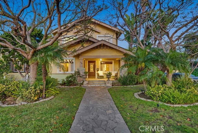 Lovingly restored and appointed 1920 Craftsman in the heart of Belmont Heights, blocks from 2nd Street and the beach. After enjoying a nice glass of wine watching the sunset from the front porch, one enters this amazing home through the stained glass/mahogany front door and into the expansive living room. There you’ll be surrounded in comfort and beauty by the gorgeous hardwood floors, marble fireplace and bathed in natural light and ocean breezes. Enjoy your meal with friends and family in the remarkable dining area surrounded in natural light from the 270 degrees of window. The spacious kitchen boasts travertine floors, custom cabinetry, marble countertops, built in appliances and a center island. The kitchen opens out to a massive back-porch overlooking the meticulously manicured and private backyard. Dedicated laundry and storage room adjacent to the kitchen. The home features two spacious bedrooms downstairs, a nice office area, along with a nicely appointed full bathroom. Upstairs has a master suite with full bath and another bedroom, both with ample closet and storage space. Recently installed HVAC system keeps everyone comfortable in any weather. Upgraded 200 amp electrical service and copper plumbing, this home is brimming with charm.