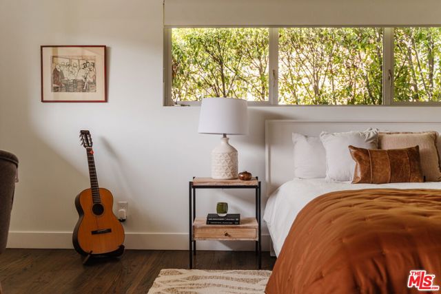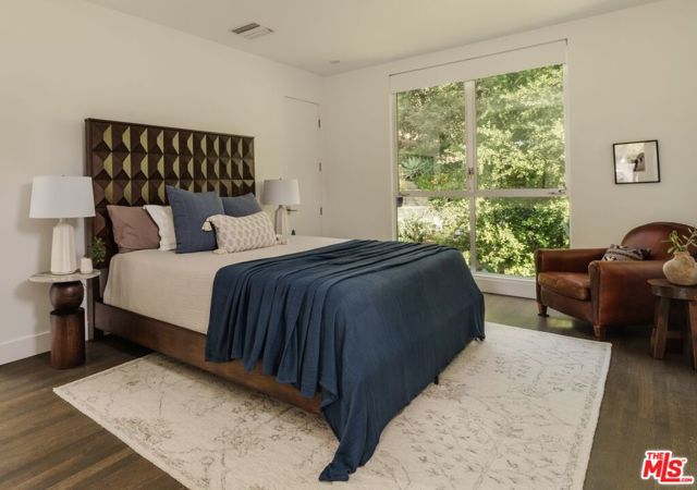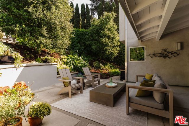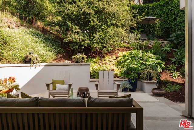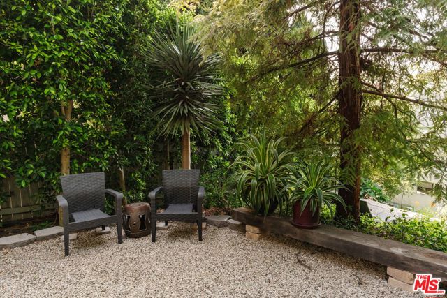 A striking architectural retreat, set behind lush hedges on a private 13,000+ sf corner lot in the coveted Los Feliz Oaks. With architecture by Landworth DeBolske AIA in 2013, the residence is thoughtfully conceived to balance architectural sophistication with easy livability, seamlessly connecting interior spaces to serene, park-like grounds. A dramatic, light-filled 17-foot foyer welcomes you in and leads to the home's main level open concept plan, offering multiple points of access to the surrounding gardens. The chic, functional kitchen with island is lined with an array of windows previewing the gently rising landscape, creating a constant dialogue with nature. The living room is anchored by an original brick fireplace and extends outward through Fleetwood sliders to the outdoor living room. Nearby, the dining area opens to an intimate, hedged courtyard with a tranquil fountain, an ideal setting for evening gatherings. Primary suite is a peaceful sanctuary overlooking the grounds, complete with a generous walk-in closet and dressing area. A skylight bathes the spacious bathroom in natural light, featuring a soaking tub and separate shower for a spa-like experience. Two additional bedrooms, hall bathroom, and discrete laundry area complete the home's 2,218sf plan. With spring in full bloom, enjoy day to night in the gardens with spectacular showpieces like the towering Redwood and mature California natives. Two additional lounging terraces are the perfect place to take in the sunset and appreciate the expansive natural world in your backyard. Wonderfully positioned in this sought after neighborhood, with easy access into the many trails of Griffith Park as well as Franklin Village's amenities including Gelson's and The Oaks Gourmet. This rare offering is a refined, modern expression of California's quintessential indoor-outdoor lifestyle.