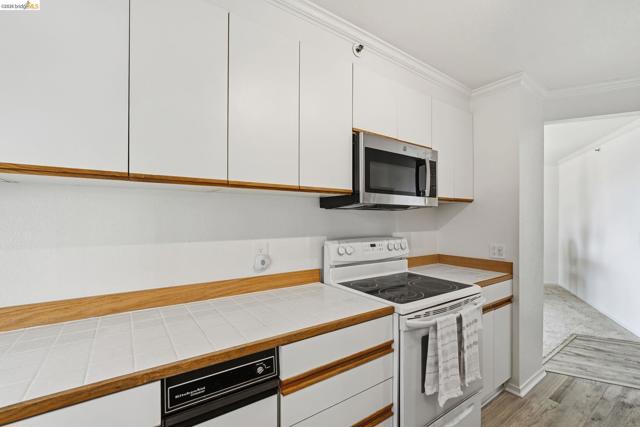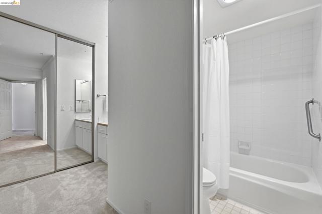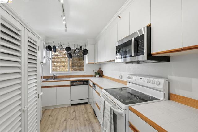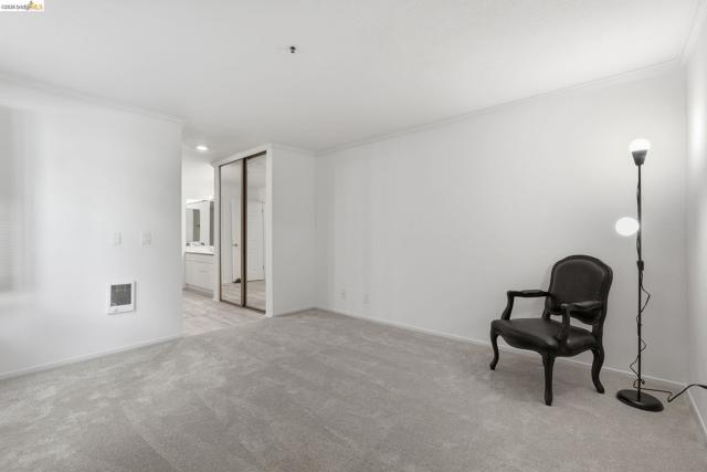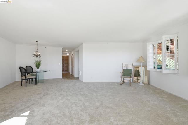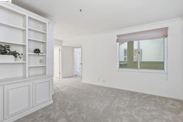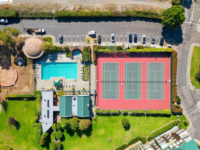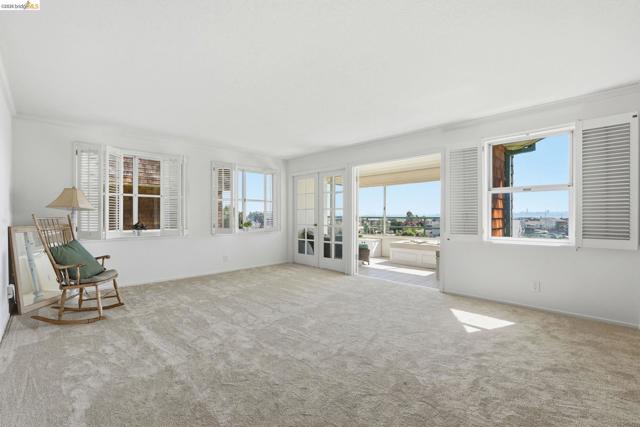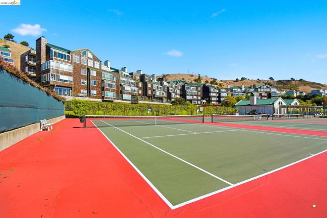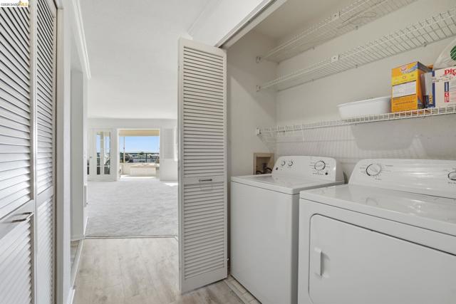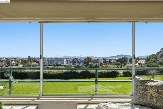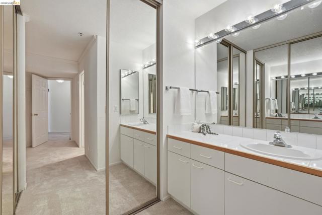 Enjoy the spacious open floorpan of this lovely 2 bedroom, 2 bath, 1421sf “E” plan located in Brickyard Landing, a nestled retreat in the picturesque Brickyard Cove. The glass framed solarium with sweeping views of San Francisco and the Bay allows for complete relaxation while capturing the vibrant sunrises and sunsets from the comfort of your living room. Two spacious ensuite bedrooms with ample closet space, separate toilet rooms, large vanities, one with a walk in shower and the other with a shower over tub. Galley style, all electric kitchen with loads of counter space is a cooks dream. In unit laundry is located in hall closet along with matching closet for more storage. One of the perks of this unit is the private extra storage closet near entry. These buildings all have elevators and community amenities which include a year round heated pool, hot tub, club house, gym, tennis/pickleball courts and locker rooms with sauna’s in each. Below building parking offers two deeded spaces, one with built in storage. Plenty of EV charging stations, community garden area and gated secure parking round out the complex. Just minutes from the quaint town of Point Richmond with it’s Natatorium, grocery stores, restaurants, salons, library, Mechanic’s bank and Masquers Playhouse, 80/580