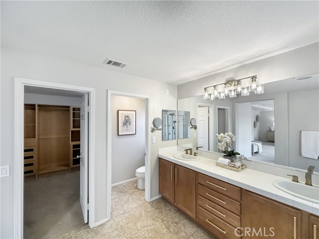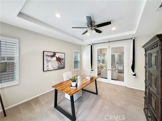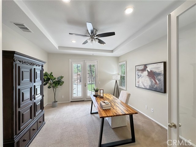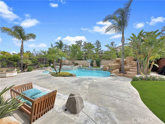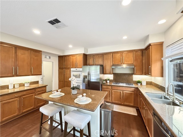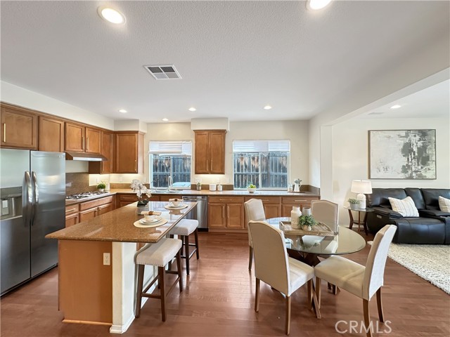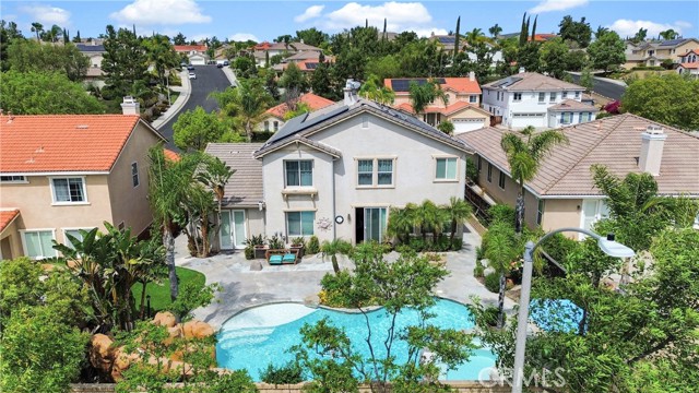 Stunning Crowne Hill pool home now features a newly plastered saltwater pool and offers the perfect blend of comfort, function, and resort-style living just minutes from Temecula wine country. Desirable floor plan includes a downstairs bedroom, full bath, and private office with double glass doors, ideal for guests, multigenerational living, or working from home. Rich hardwood flooring flows through most of the home, with a formal dining room positioned for easy entertaining and poolside views. The kitchen features granite countertops, gas cooktop, microwave, double ovens, center island with bar seating, and a butler’s pantry and a brand-new stainless refrigerator. Recently updated laundry room adds a modern touch with brand-new washer and dryer. Spacious family room includes a gas fireplace and direct backyard access for seamless indoor-outdoor living. Plantation shutters throughout most of the home. Upstairs offers a large loft, media/office nook, spacious primary suite with French door entry, dual sinks, soaking tub, separate shower, and walk-in closet with custom built-ins, plus two additional bedrooms and a full bath. Additional upgrades include QuietCool whole-house fan and solar for energy efficiency. Both front and backyards feature extensive hardscape and landscape. The private backyard is an entertainer’s dream with a newly plastered saltwater pool, rock slide, waterfall, spa, pool fence, tropical landscaping, plum tree, grapevines, expansive patio, and fire pit seating area. Located in one of Temecula’s most sought-after neighborhoods near top-rated schools, shopping, and award-winning wineries.