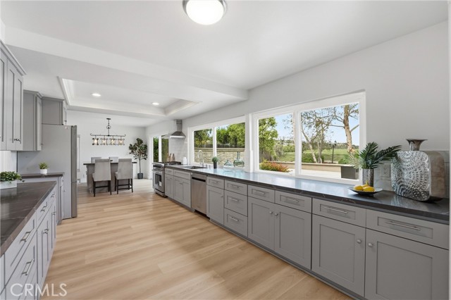 Set along the fairways in one of Mission Viejo’s established neighborhoods, 26925 Via Grande offers the kind of setting that instantly feels calm, open, and elevated. With golf course frontage, a generous 13,000+ square foot lot, and nearly 2,900 square feet of living space, this 5 bedroom, 3 bath home blends comfort, function, and everyday beauty in a way that is hard to find. You can enjoy the golf course view from the kitchen, family room, dining area, primary bedroom, secondary bedroom and of course the backyard. Inside, the home has been thoughtfully refreshed from top to bottom. Fresh paint, brand new luxury vinyl flooring throughout, recessed lighting, updated kitchen and baths, and brand new stainless steel appliances give the entire property a clean, polished feel. The layout is incredibly practical, with a main floor bedroom & bath that works beautifully for guests, extended family, or a private home office. The updated kitchen opens to the family room. Both the living room & family room feature fireplaces, adding warmth and character. Upstairs, the primary suite enjoys its own balcony overlooking the backyard and the golf course, creating a quiet place to start or end the day. Another secondary bedroom opens to a balcony with city light views, adding yet another layer of charm. The two car garage has a new epoxy flooring & modern lights with access to the side yard. The backyard is the entertainer's delight: spacious, scenic, and ready for gathering ,with a firepit, built-in BBQ, brand-new mini fridge, and soothing fountain, all set against the backdrop of the gorgeous golf course. Beyond the home itself, the location is a huge part of the story. Granada Park is right nearby on Via Grande, and Viejo Elementary is in walking distance. You have full access to beautiful Lake Mission Viejo too. For lifestyle and convenience, you are close to The Shops at Mission Viejo, as well as Kaleidoscope’s shopping & dining options nearby. Providence Mission Hospital is also close by, which adds another layer of practical convenience to the location. What stands out most about this location is the balance it offers: a home that feels tucked into a beautiful golf course setting, yet still connected to the everyday conveniences that matter. You get the views, the lot size, the flexible floor plan, the major system updates like PEX repiping and newer HVAC and water heater, and the kind of Mission Viejo location that makes daily life easier. This shall not last!