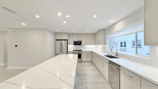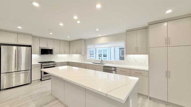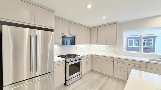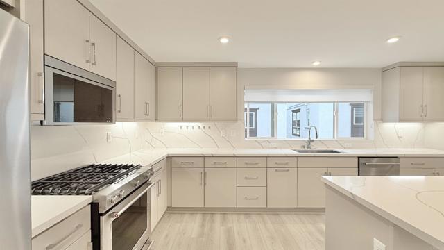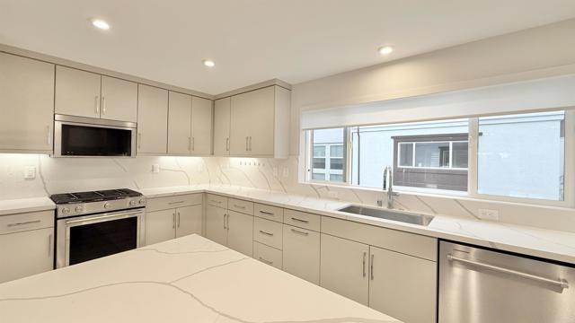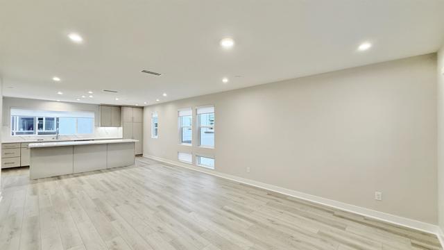 LUXURY + OPEN FLOOR PLAN + INDOOR OUTDOOR LIVING + DESIGNER UPGRADES. PRIME LOCATION - Beautiful brand new construction 3-story townhome in the newly built Mira Vista community. - Minutes to Mission Bay, Pacific Beach, La Jolla, Downtown and the airport. - Exceptional home design with thoughtful layout. - Entry level offers a private bedroom suite, ideal for guests or extended family. - Main level features open modern living space with covered balcony. - First-floor outdoor patio, perfect for relaxing, entertaining and enjoying the coastal breeze. - Great room and covered balcony create seamless indoor and outdoor living. - Large open kitchen with large center island, connected to casual dining area. - Kitchen features stainless steel appliances, designer cabinets, quartz countertops in kitchen and bathrooms, and stylish kitchen backsplash. - Upgraded vinyl flooring on main level, upgraded tile and plush carpet. - Electrical and low-voltage upgrade packages included.