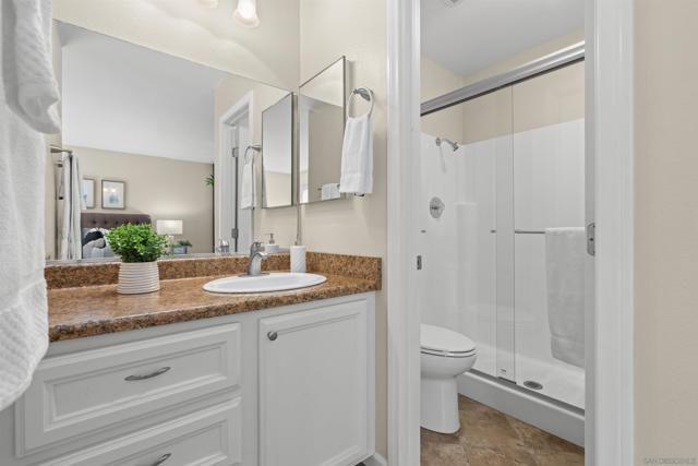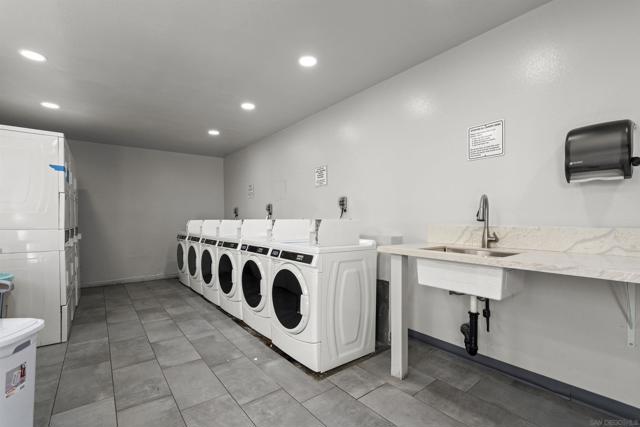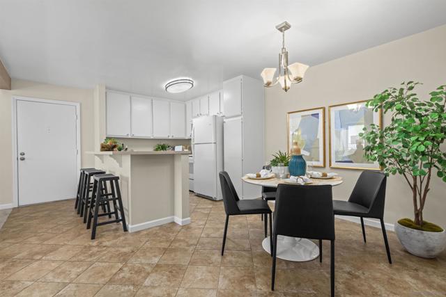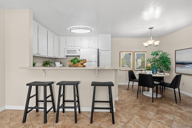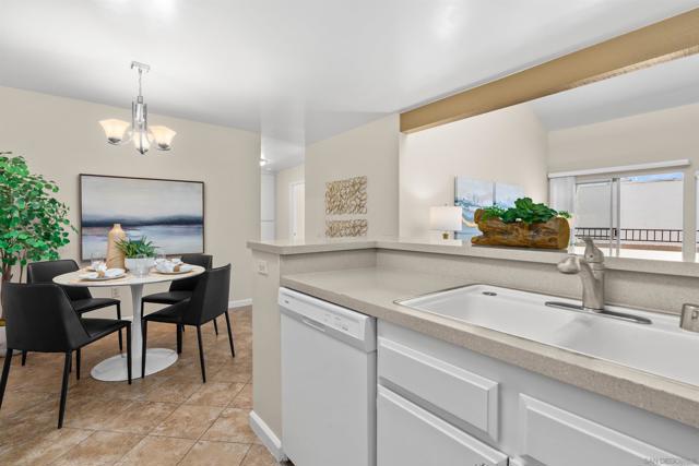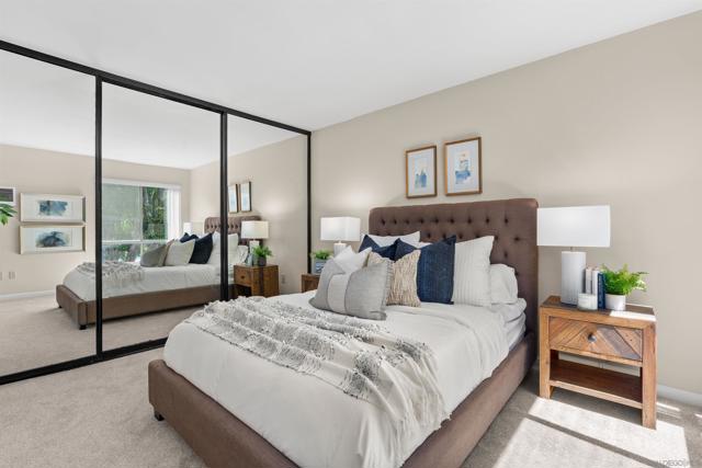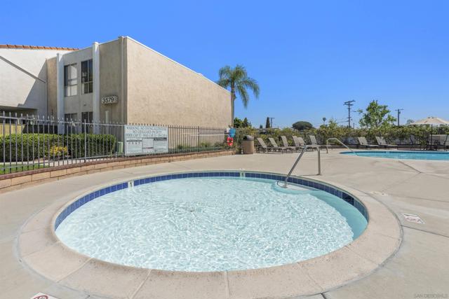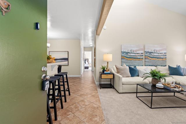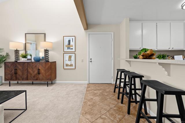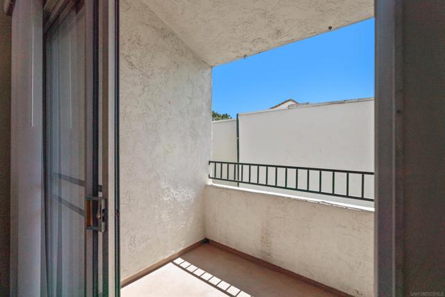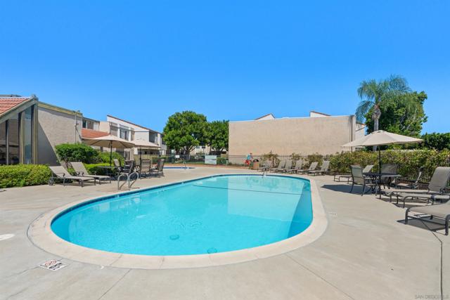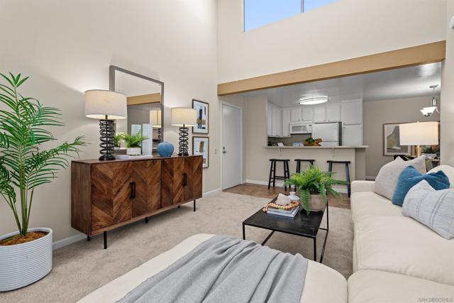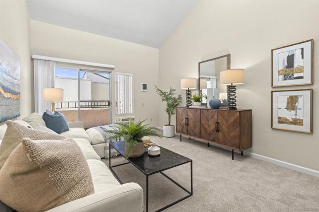 Light, bright & airy! This terrific top floor Serra Mesa condo features vaulted ceilings in the living room, a spacious master bedroom w/ a huge 3 door closet and upgraded shower doors in the master bath. There's also a nice wall AC unit in the living room for those warm Summer days. Upgrades include fresh paint, new carpet, newer 6 panel interior doors & updated light fixtures. The kitchen features an open concept & solid surface counter tops. There's even 2 assigned parking spots! Please see supplement for more. Welcome home! The complex amenities include a wonderful pool area complete with spa and kiddie pool, a rec room w/ a pool & ping pong table, BBQ area & a large fenced in dog run.