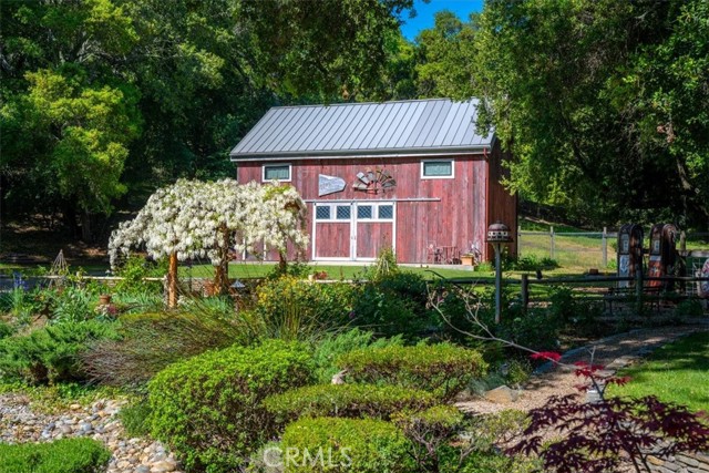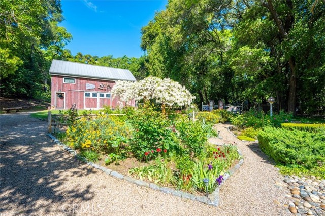 Welcome to 12500 Cenegal, a truly rare offering tucked within the highly sought-after Paradise Valley area of Atascadero. Set on just over 3 picturesque acres, this thoughtfully updated 3-bedroom, 3-bathroom home offers a lifestyle that feels worlds away- yet still close to everything. Surrounded by majestic oaks and sycamores, with a seasonal creek meandering through the property, the setting is nothing short of magical. Deer wander through, wild turkeys pass by, and every corner of the land invites you to slow down and take it all in. The grounds are a masterpiece of design and care- reminiscent of a storybook English garden. Meander along flagstone pathways past a dry creek bed, koi pond, blooming roses, and vibrant seasonal flowers, all creating a private, park-like oasis that feels both curated and completely natural. Follow the wisteria-covered path to a true showstopper: a beautiful, fully renovated, 1840s antique hand-hewn timber frame barn relocated from New York. It was completed with a loft and is currently enjoyed as a stunning entertaining space. Whether you envision gatherings, a studio, or something entirely your own, the possibilities here are endless. Additional features include a detached accessory building with two separate rooms, ideal for a home office, creative space, or guest overflow. Inside, the home has been tastefully updated with a refreshed kitchen and bathrooms, along with a flexible bonus space perfect for a den, office, bedroom or additional living area. Properties like this are more than homes- they’re legacy opportunities. A place to gather, create, and enjoy for years to come. Come experience the beauty and serenity of 12500 Cenegal, this is one you truly have to see to believe.
