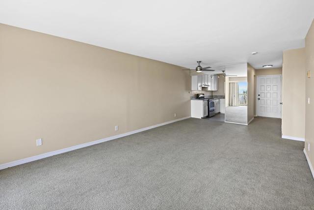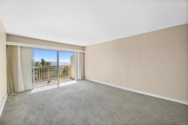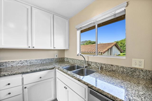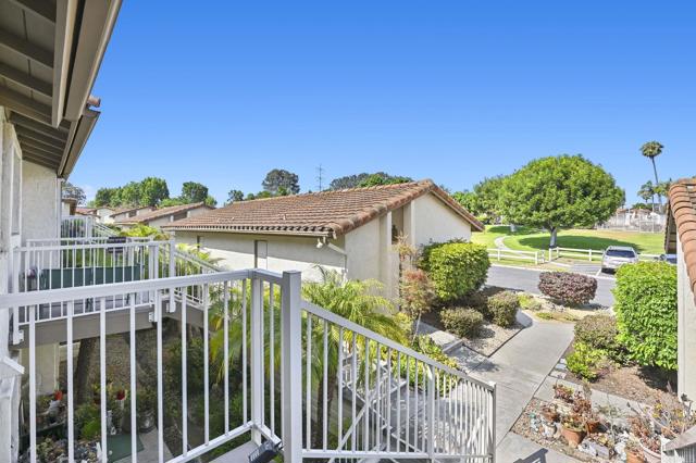 Best location in the development! Step into panoramic gorgeous Encinitas mountain views in this highly desirable quiet location in High Country Villas. Directly across the street from the beautiful 9 hole golf course, pickleball, pool and clubhouse. Upper unit with 2 bedrooms 1 bath home with no neighbors behind you. All new electrical panel just completed. Flooring, bathroom cabinet, lighting and kitchen counter tops all done. Popcorn ceilings removed. This single level town home is in a 55+ community that offers golf, swimming pool and spa, hiking/biking trails, clubhouse activities such as bocce ball, aqua aerobics, exercise classes, clubs and much more lifestyle and friendship. Less than 4 miles to moonlight beach and close to award winning shopping, dining, and medical. Enjoy unbelievable sunsets from the front of the property and follow the colors in the sky over the mountains from your private balcony in the back. Views from every window including golf course views, mountain views and hot air balloon views. Morning sunrises over the mountains are spectacular!