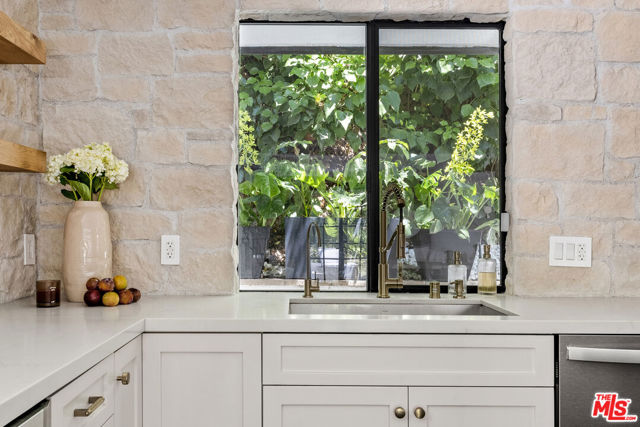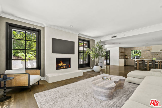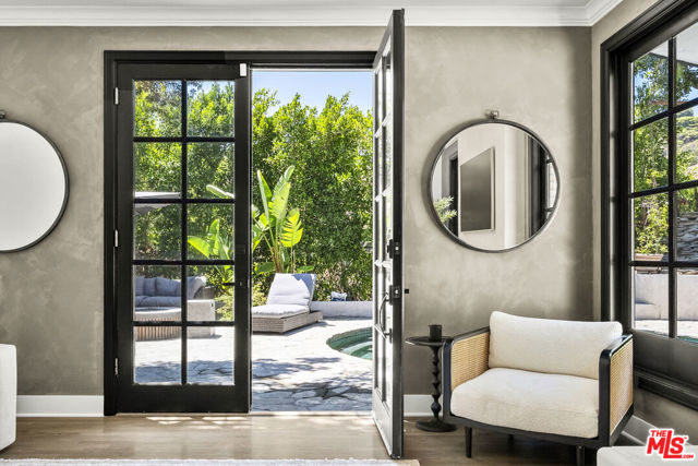 Tucked behind private gates at the end of a quiet drive, this reimagined Beverly Hills retreat embodies the essence of modern California living. Beyond the garden wall, the estate opens to a park-like sanctuary surrounded by mature trees, curated landscaping, and complete privacyan atmosphere that feels worlds away, yet just minutes from the heart of Beverly Hills.Recently and thoughtfully redesigned, the home embraces a bright, contemporary floor plan with effortless indooroutdoor connection through expansive French doors. Vaulted, beamed ceilings and skylights bathe the interiors in natural light, creating an elevated yet relaxed ambiance throughout.The spacious living room centers on a striking fireplace and wide-plank hardwood floors that flow seamlessly to the outdoor terraces. The residence offers three bedrooms and three baths, including a serene primary suite with a sitting area, fireplace, dry sauna, and an oversized walk-in closet. The spa-inspired bath features a soaking tub, steam shower, and dressing area rivaling a luxury resort.At the heart of the home, the chef's kitchen is outfitted with stone countertops and professional-grade appliances, opening to a sunlit dining area perfect for everyday living and entertaining.Altogether, this private, design-forward estate captures the romance of indoor/outdoor California living refined, tranquil, and moments from the best of Beverly Hills.